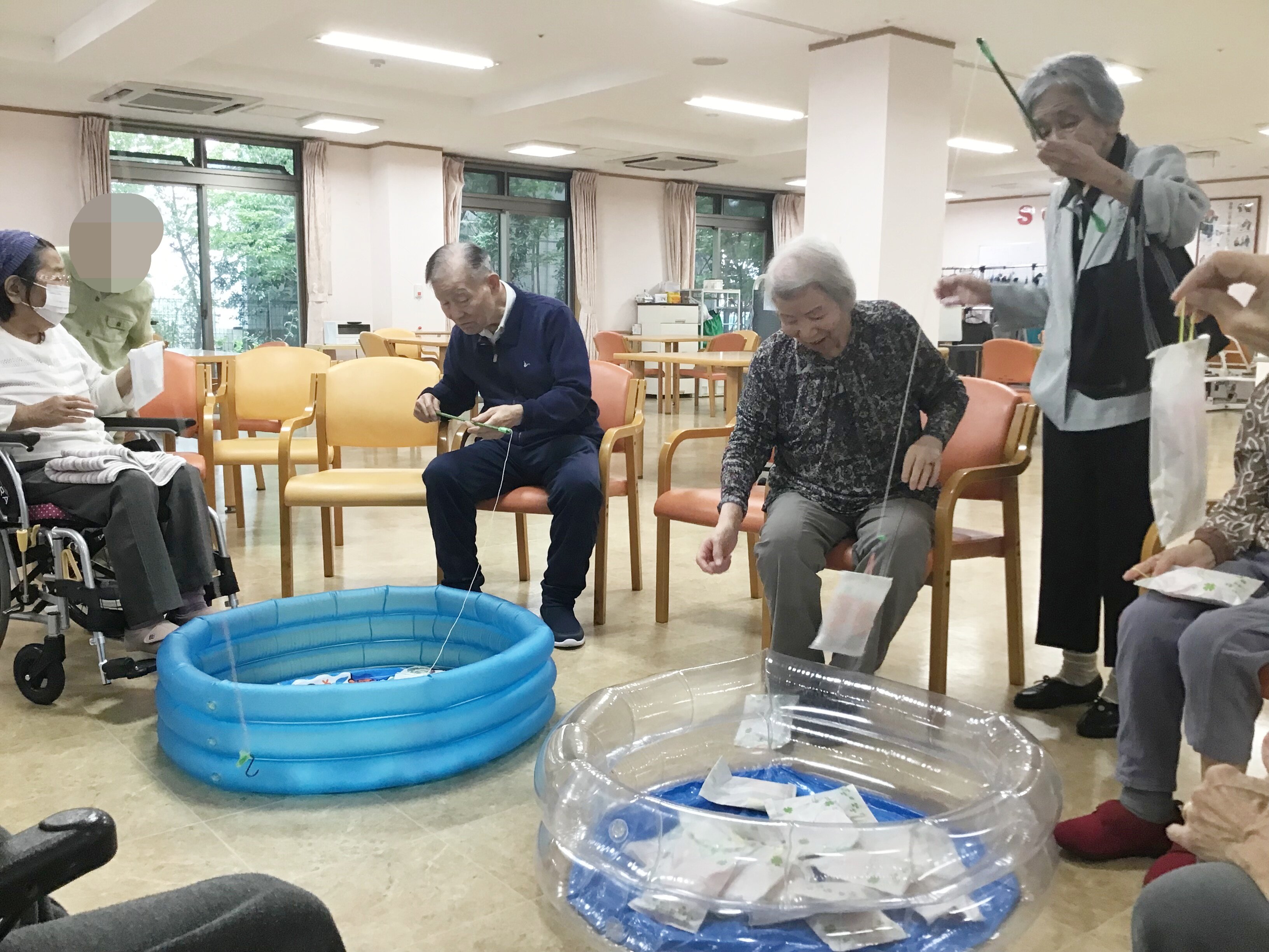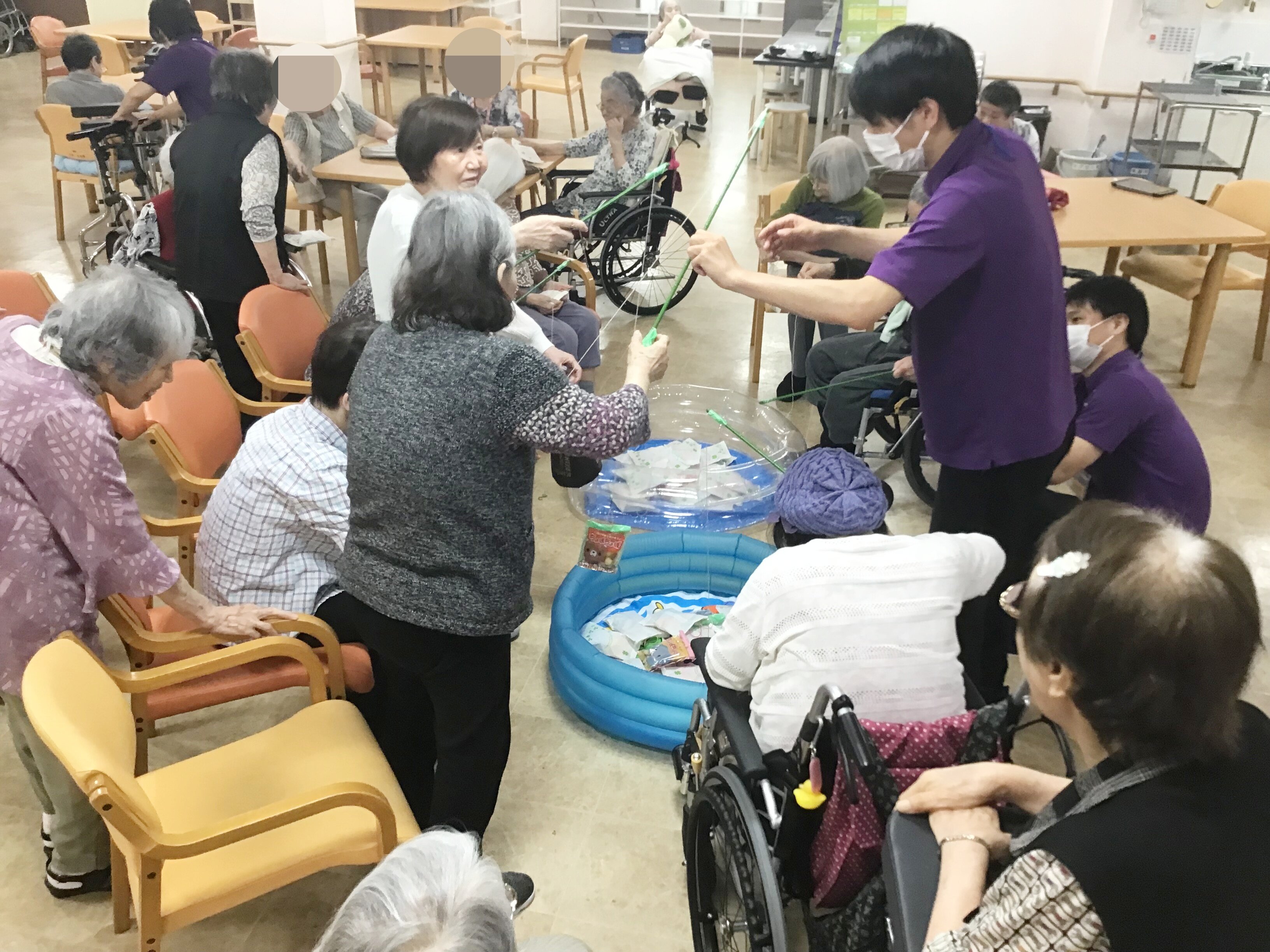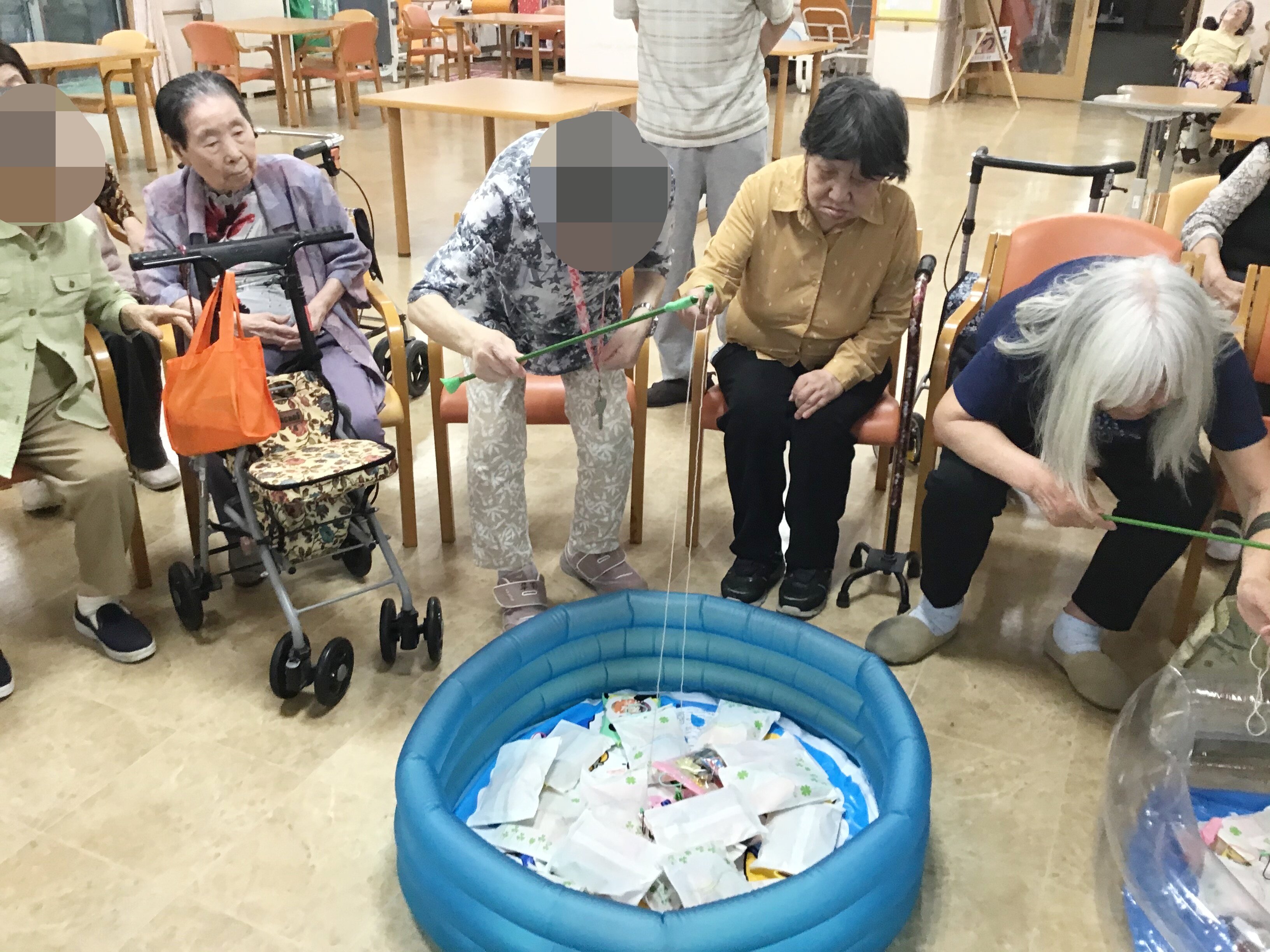 ビニールプールを二つ用意して皆様にお菓子釣りを楽しんで頂きました!