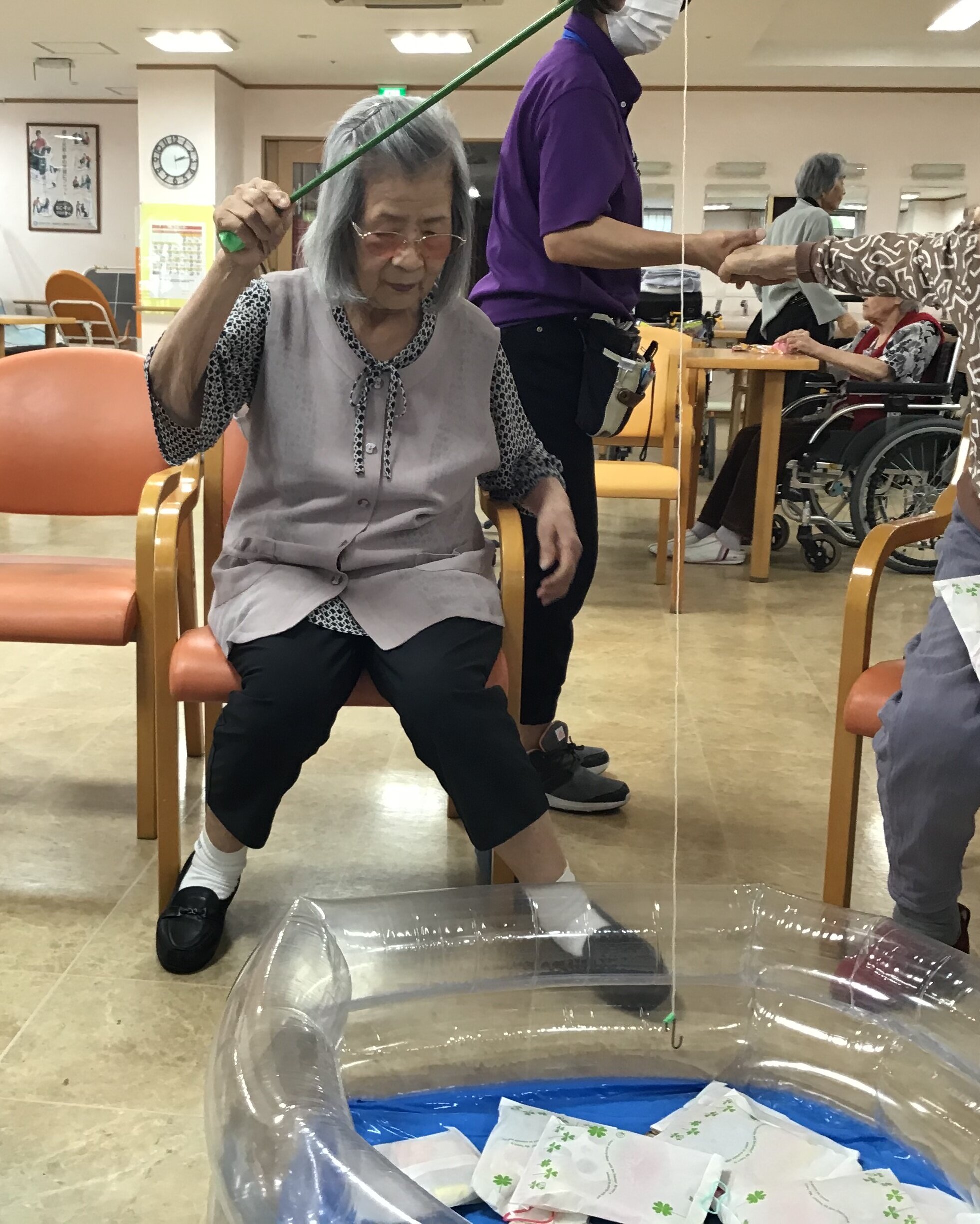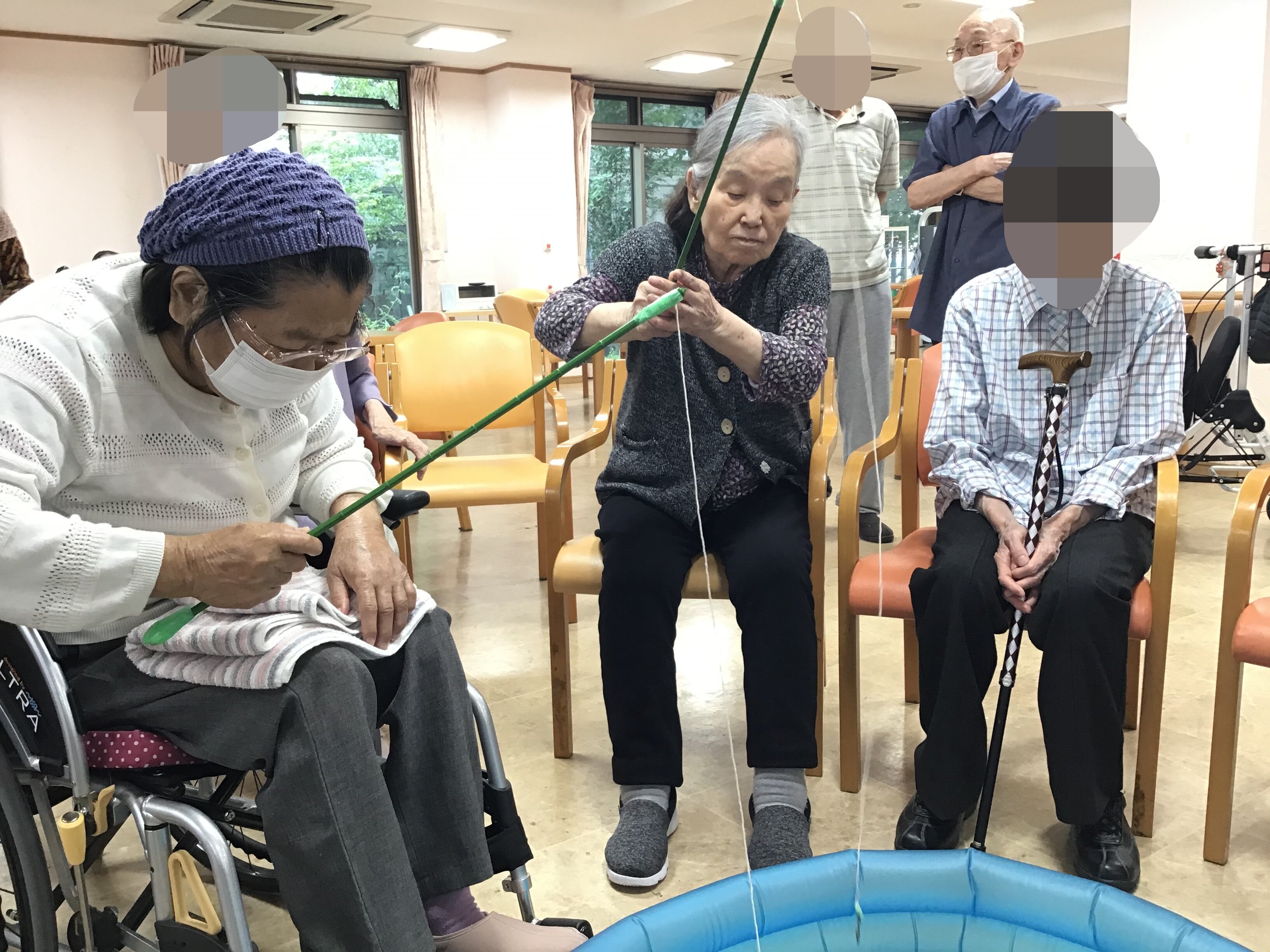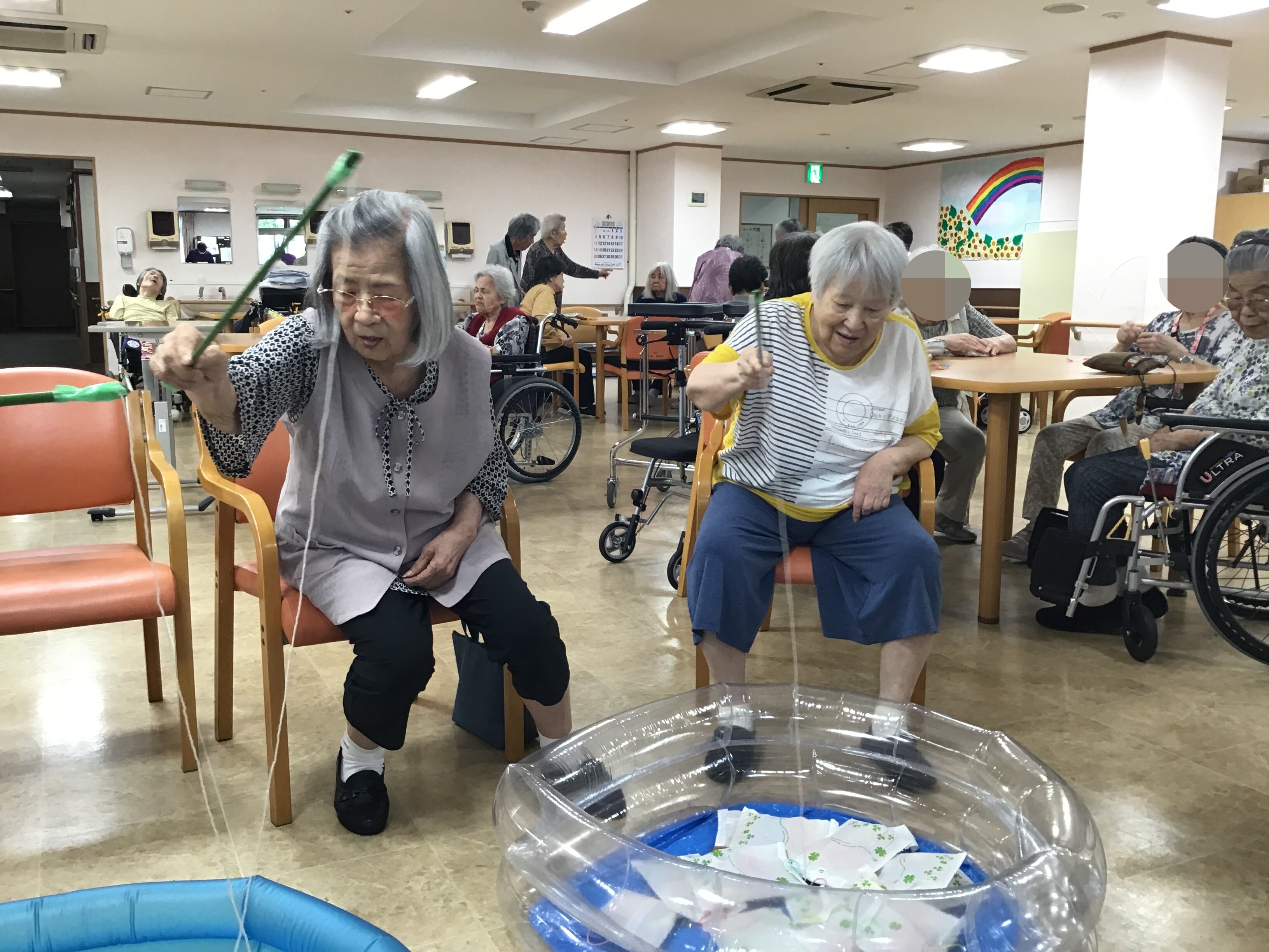 ビニールプールを二つ用意して皆様にお菓子釣りを楽しんで頂きました!