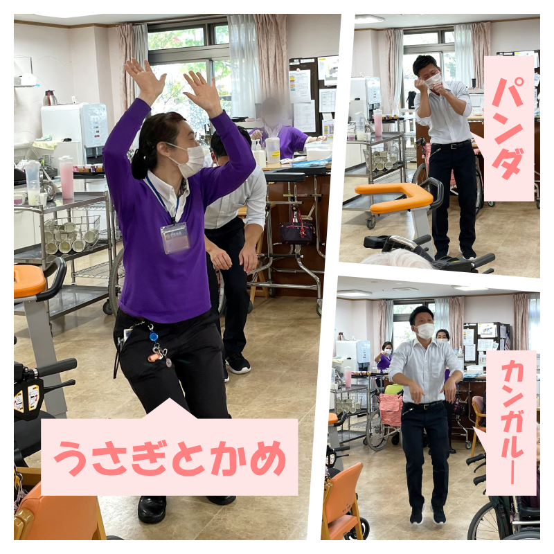 動物のジェスチャーをして皆さんに当ててもらい、その動物がビンゴカードにあればチェックするというルールで行いました♩