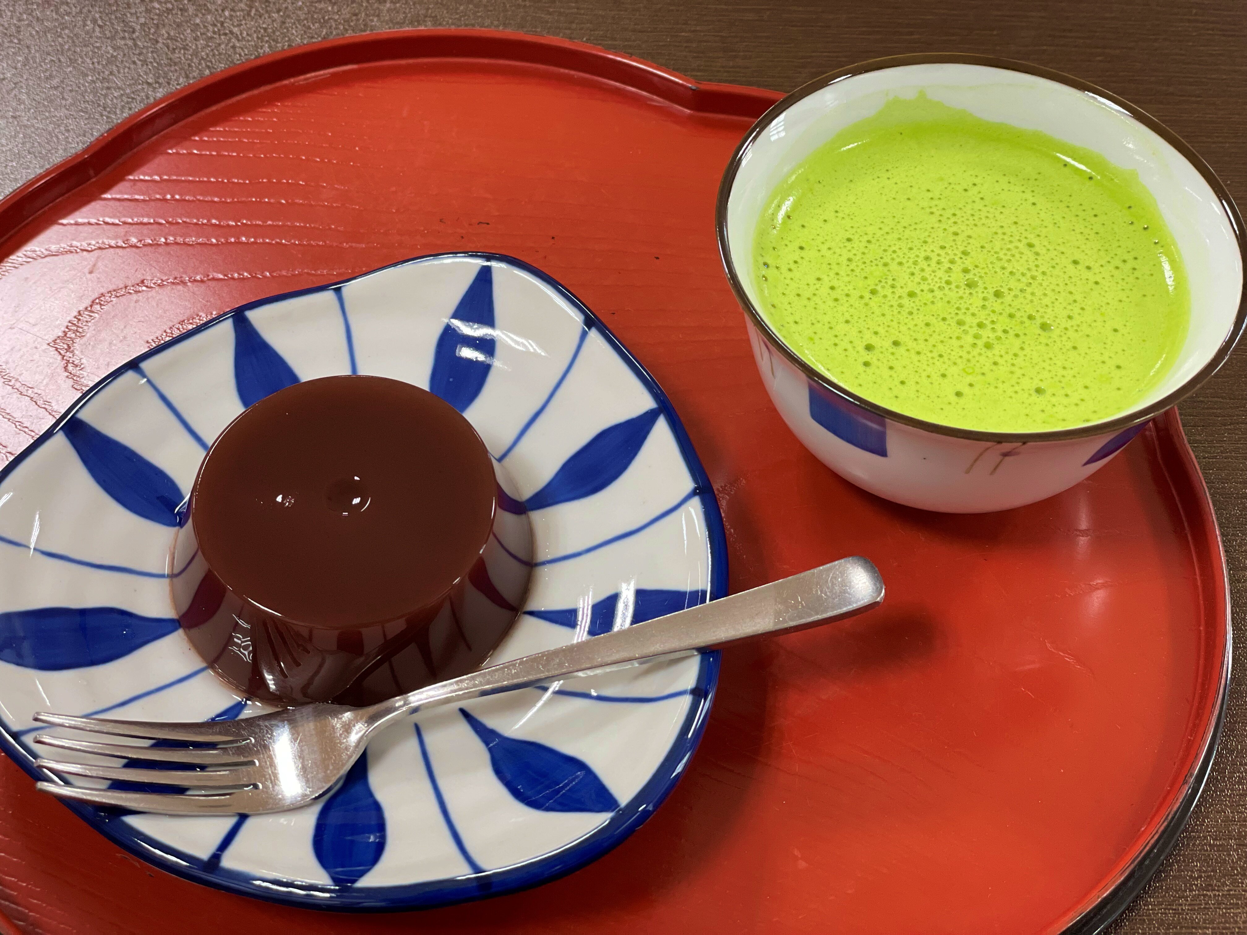 写真撮影をしながらお待ちいただいている皆様に"水羊羹"といまどきな"抹茶ラテ"