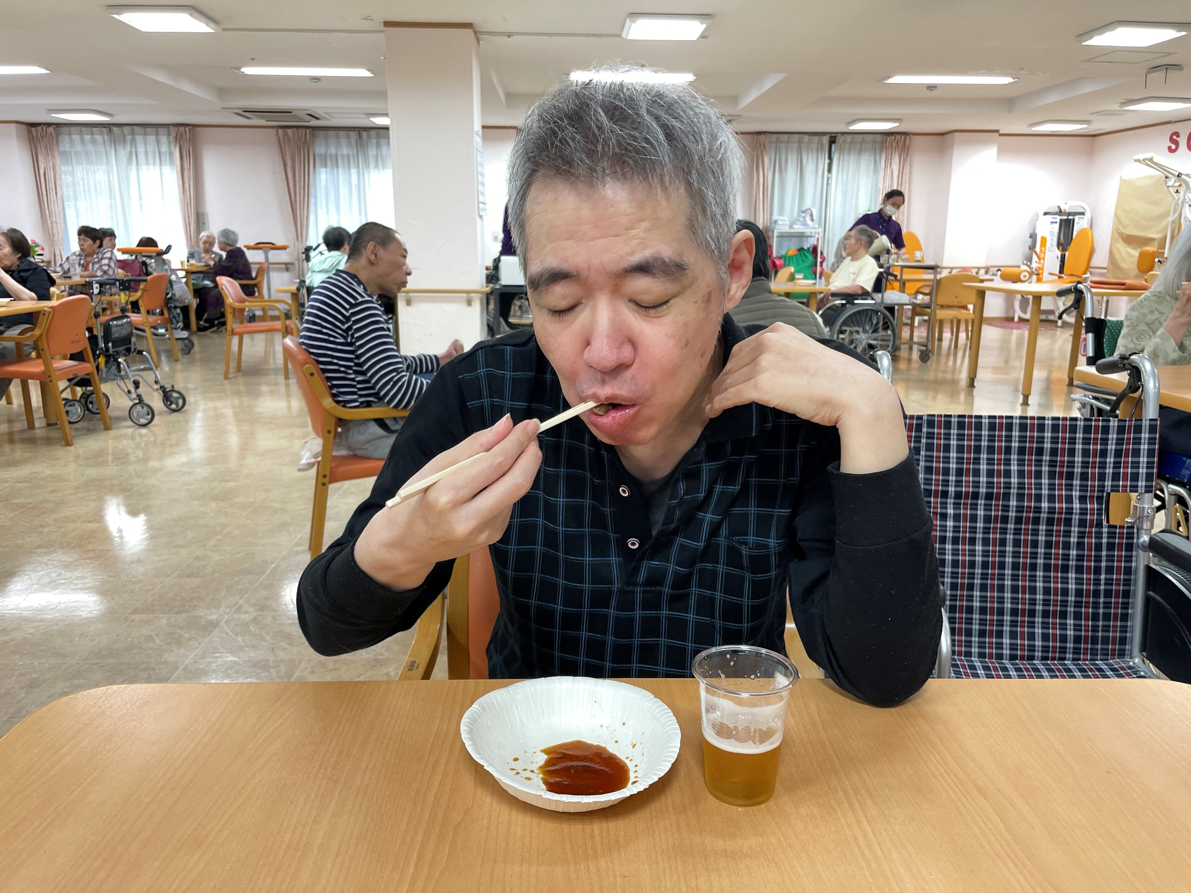 それではビールや梅酒(ノンアルコール)と共に召し上がられている様子をご覧ください♪