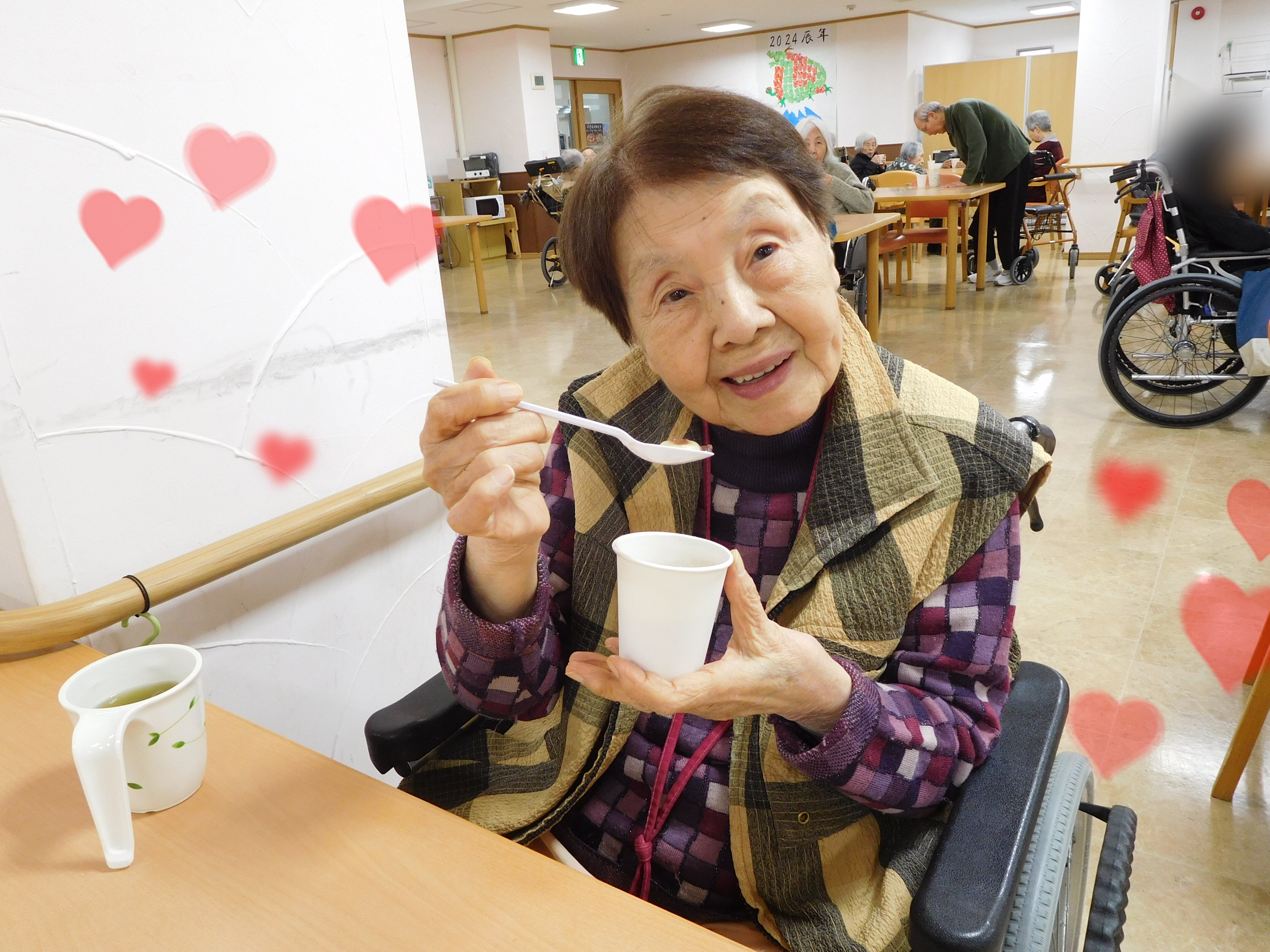 ぜんざいとして緑茶と一緒に