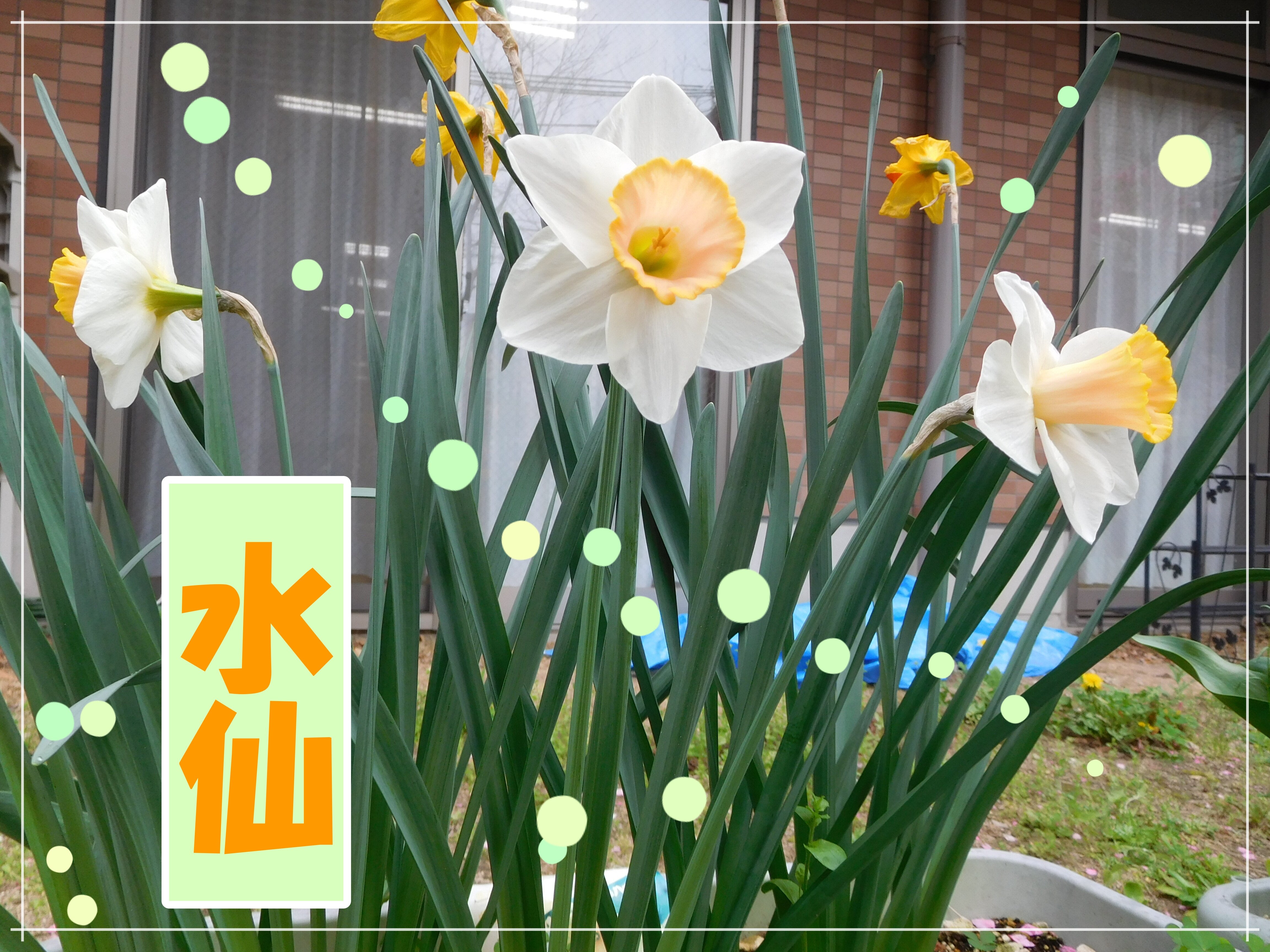 窓からお花を眺めて