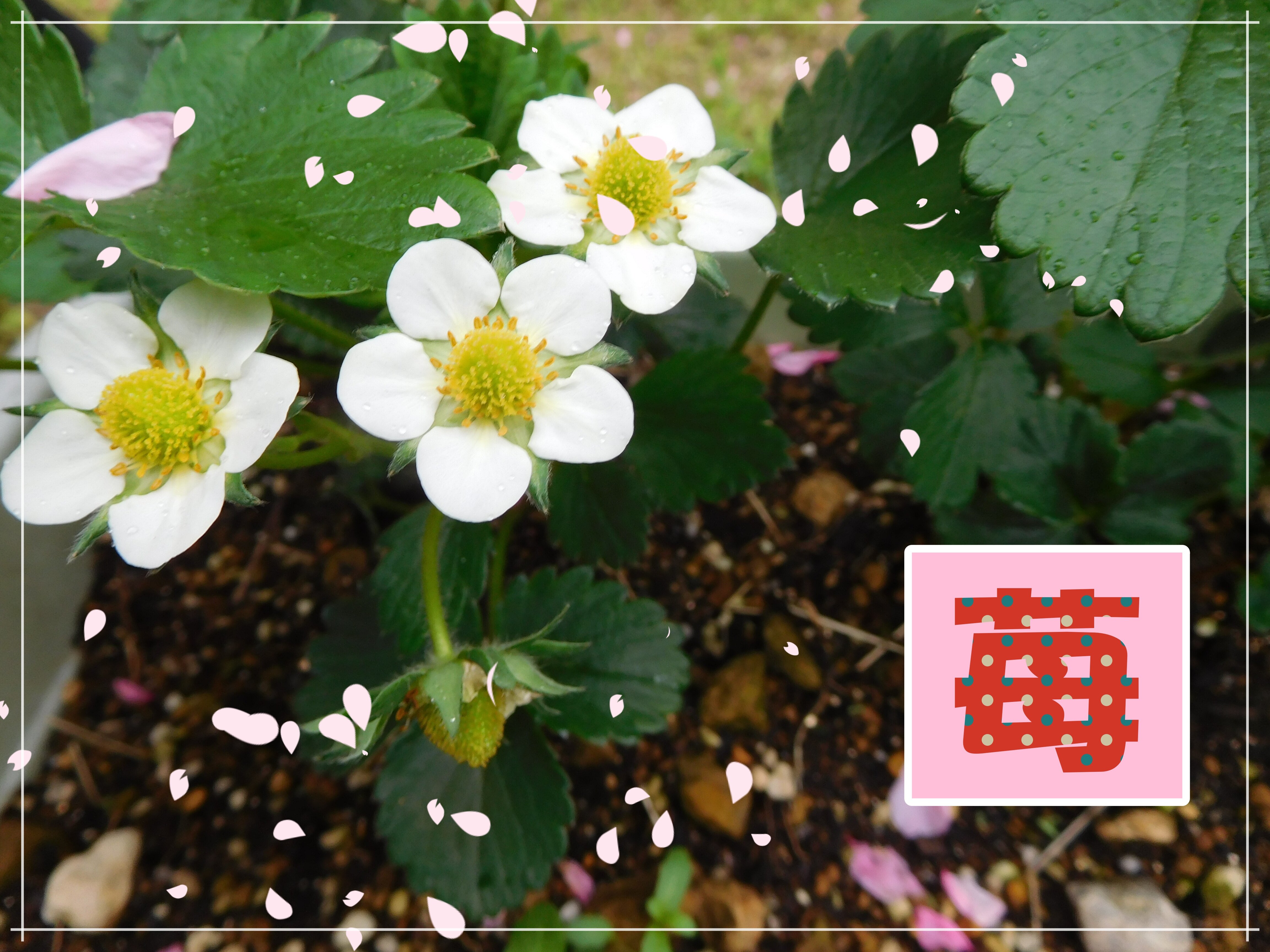 イチゴもお花が咲いて