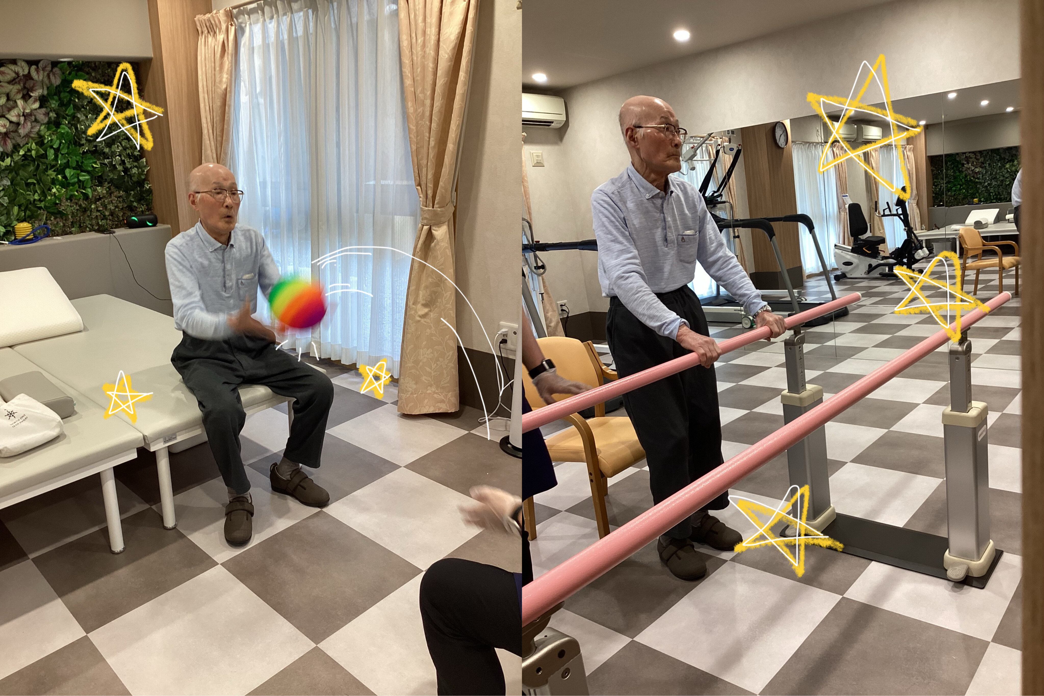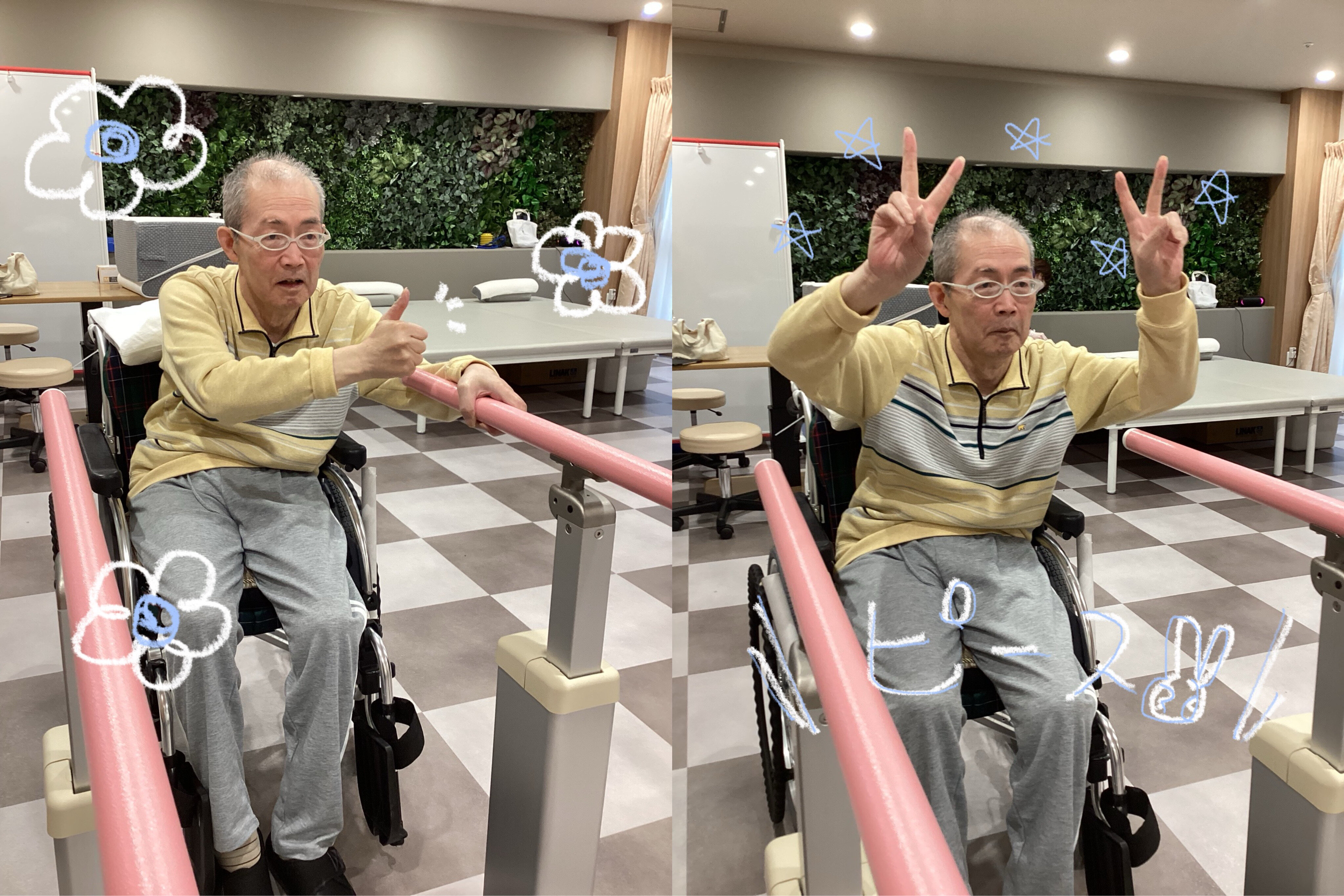 3往復歩行された後のグッドサインとダブルピース✌︎✌︎リハビリお疲れですd( ̄  ̄)
