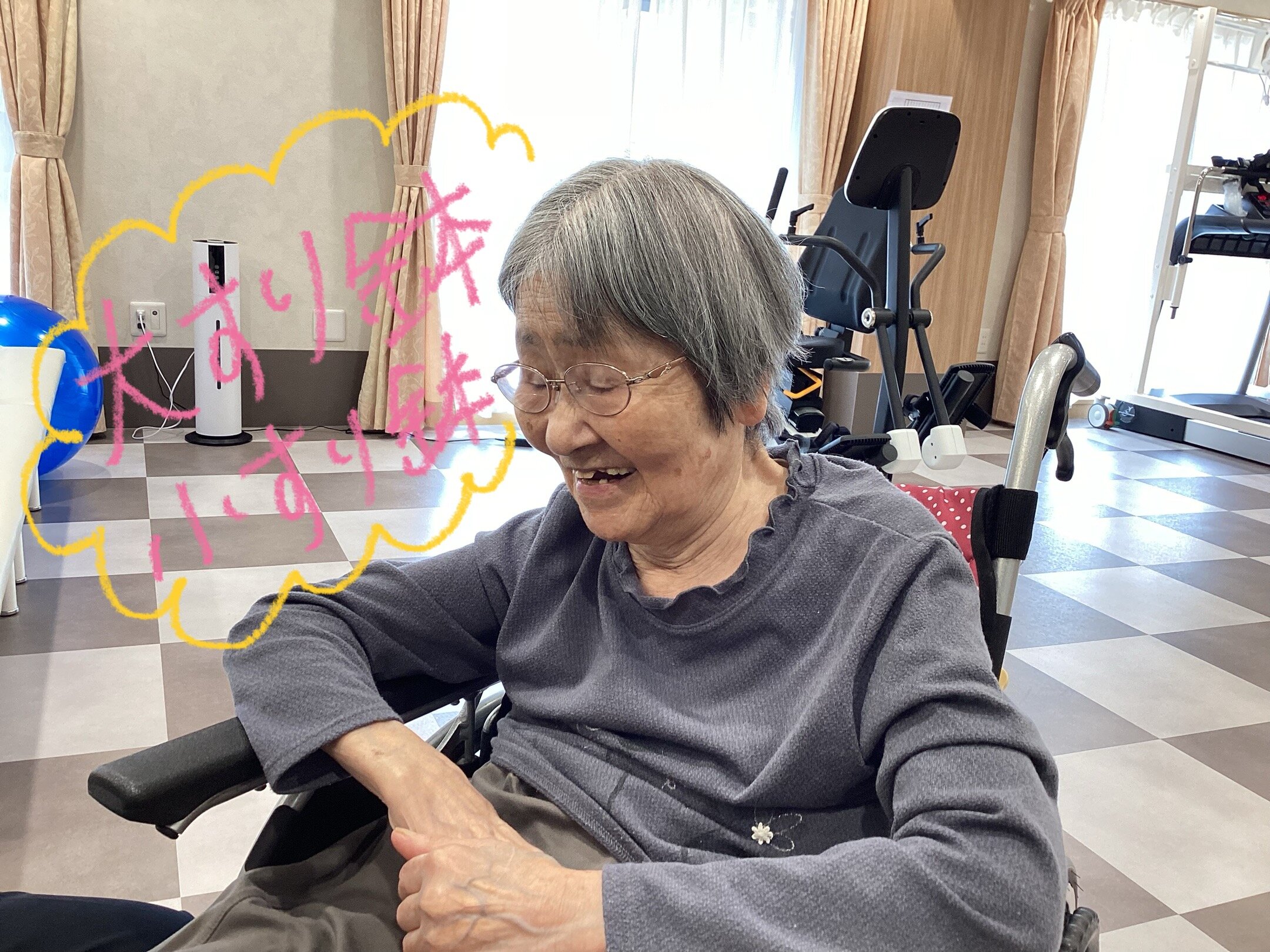 リハビリ室で休憩しているところお話しさせていただきました♪