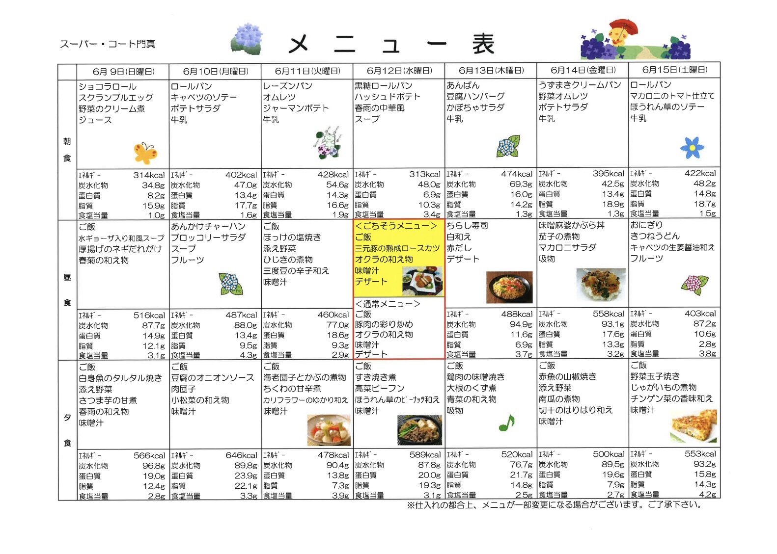 6/9〜のお食事メニューです♡