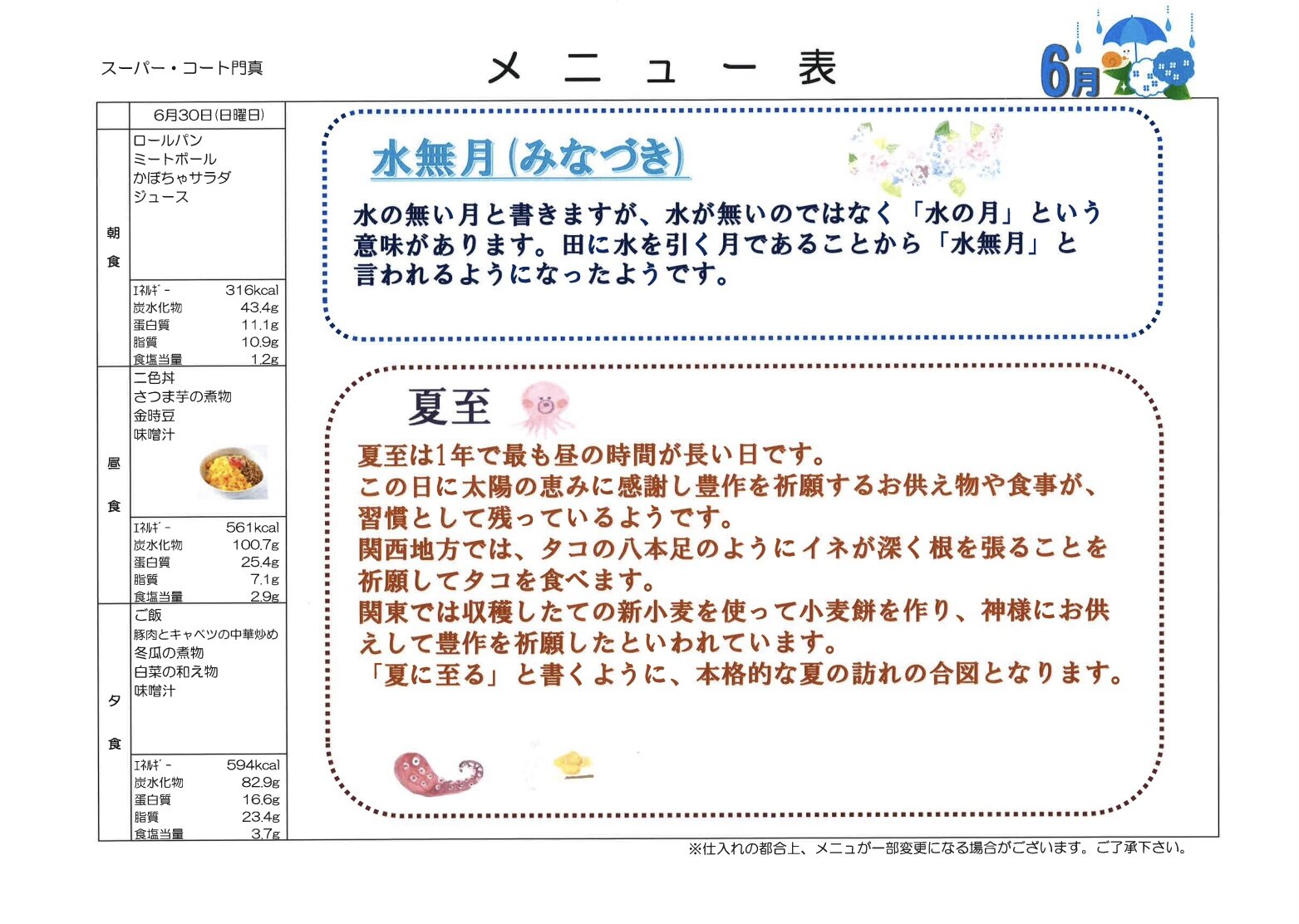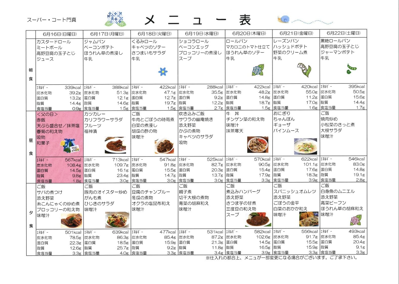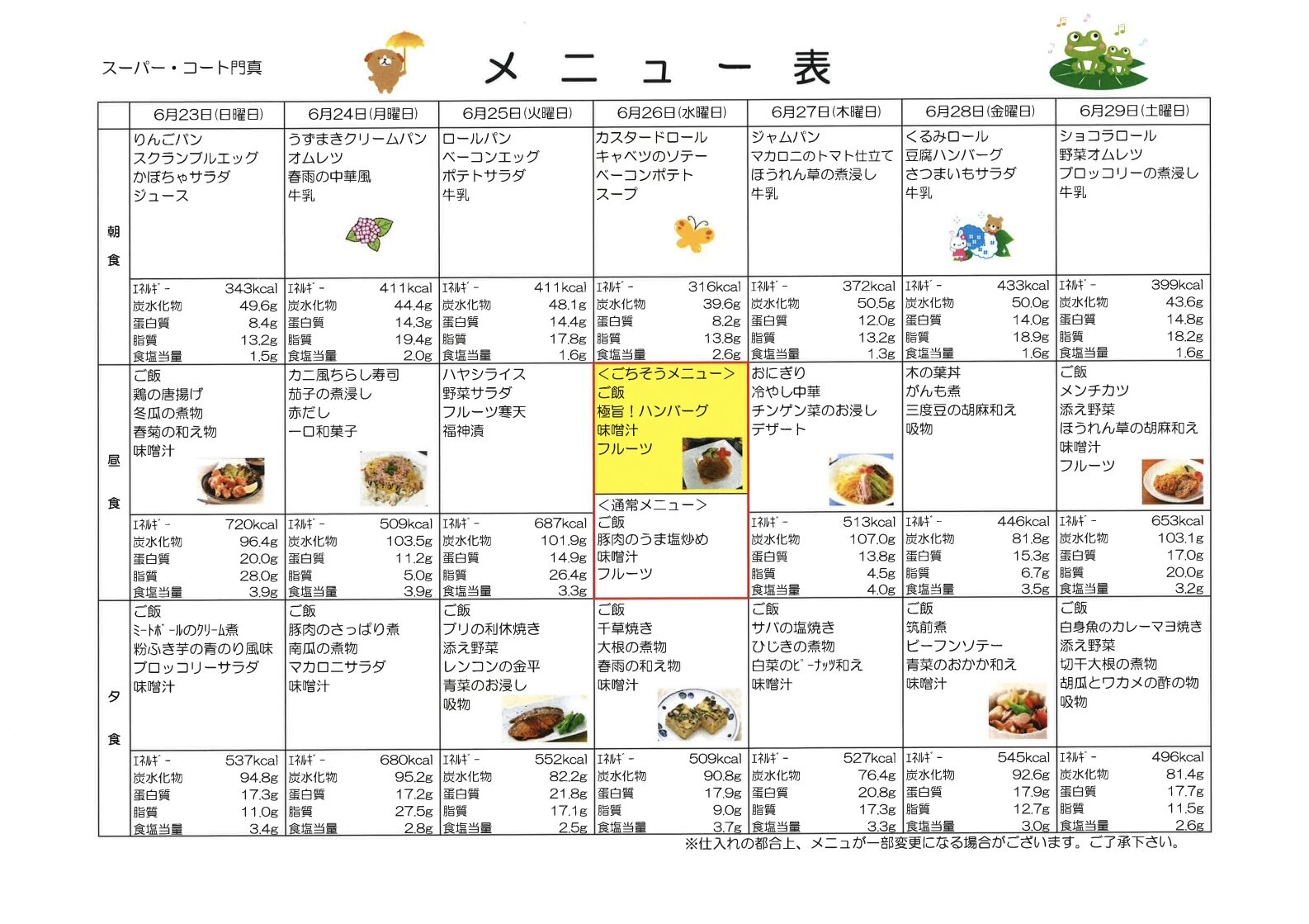 6/23〜のお食事メニューです♡