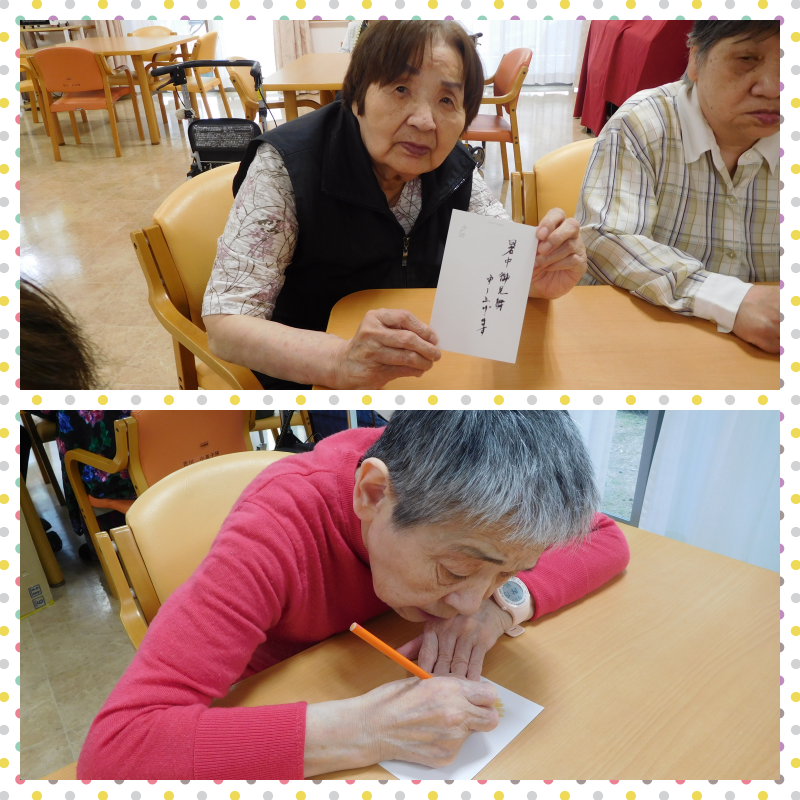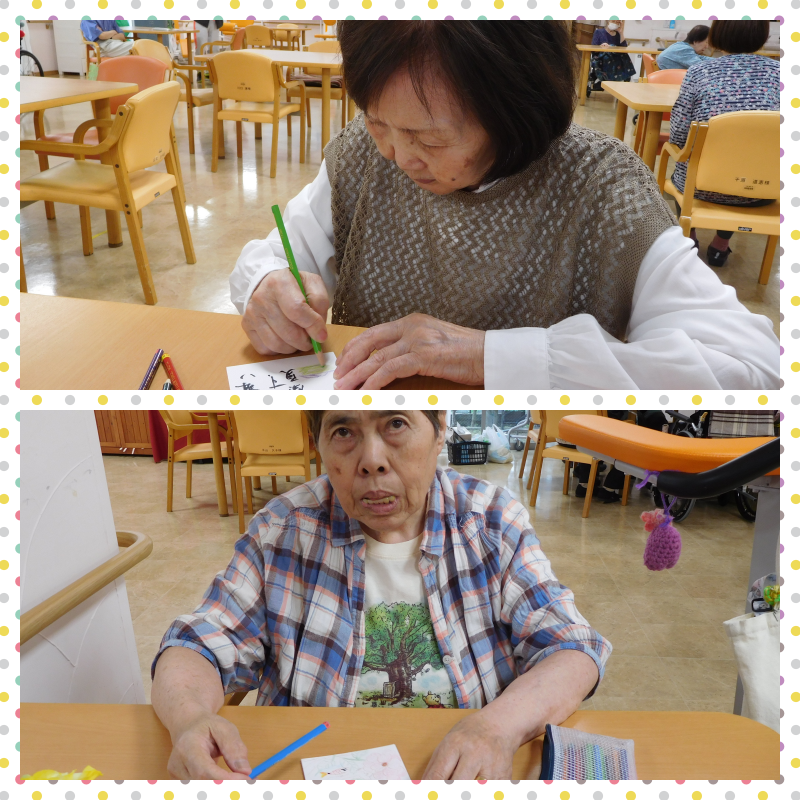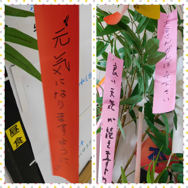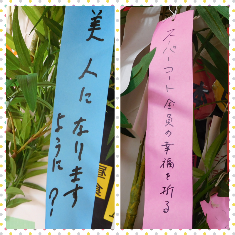 皆さんぺんを手に、色とりどりの短冊にご自分でお願いごとを書かれていますした。