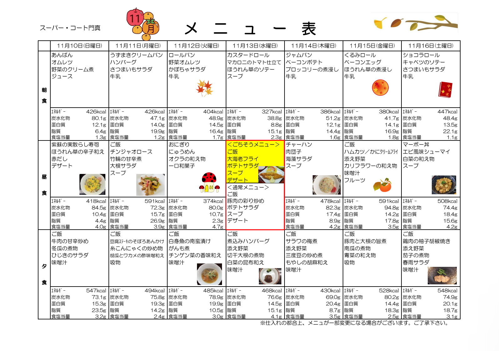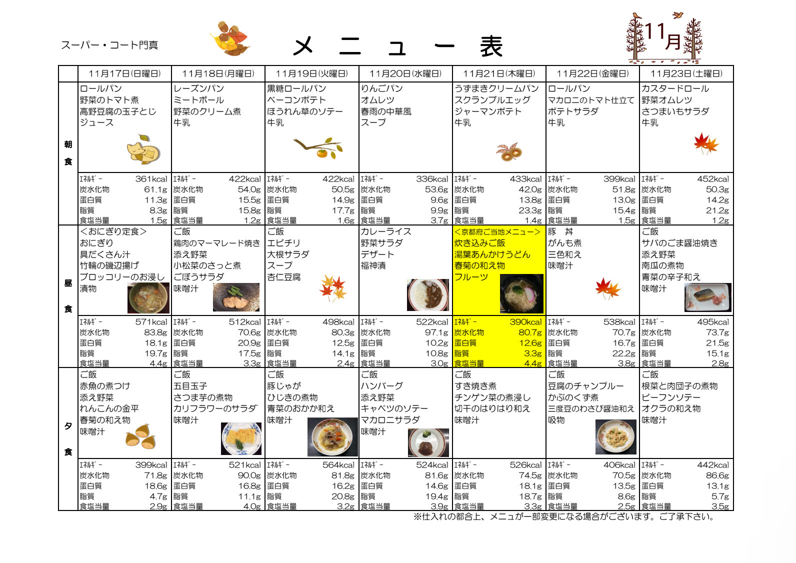 11/17〜お食事メニューです(๑>◡<๑)♡