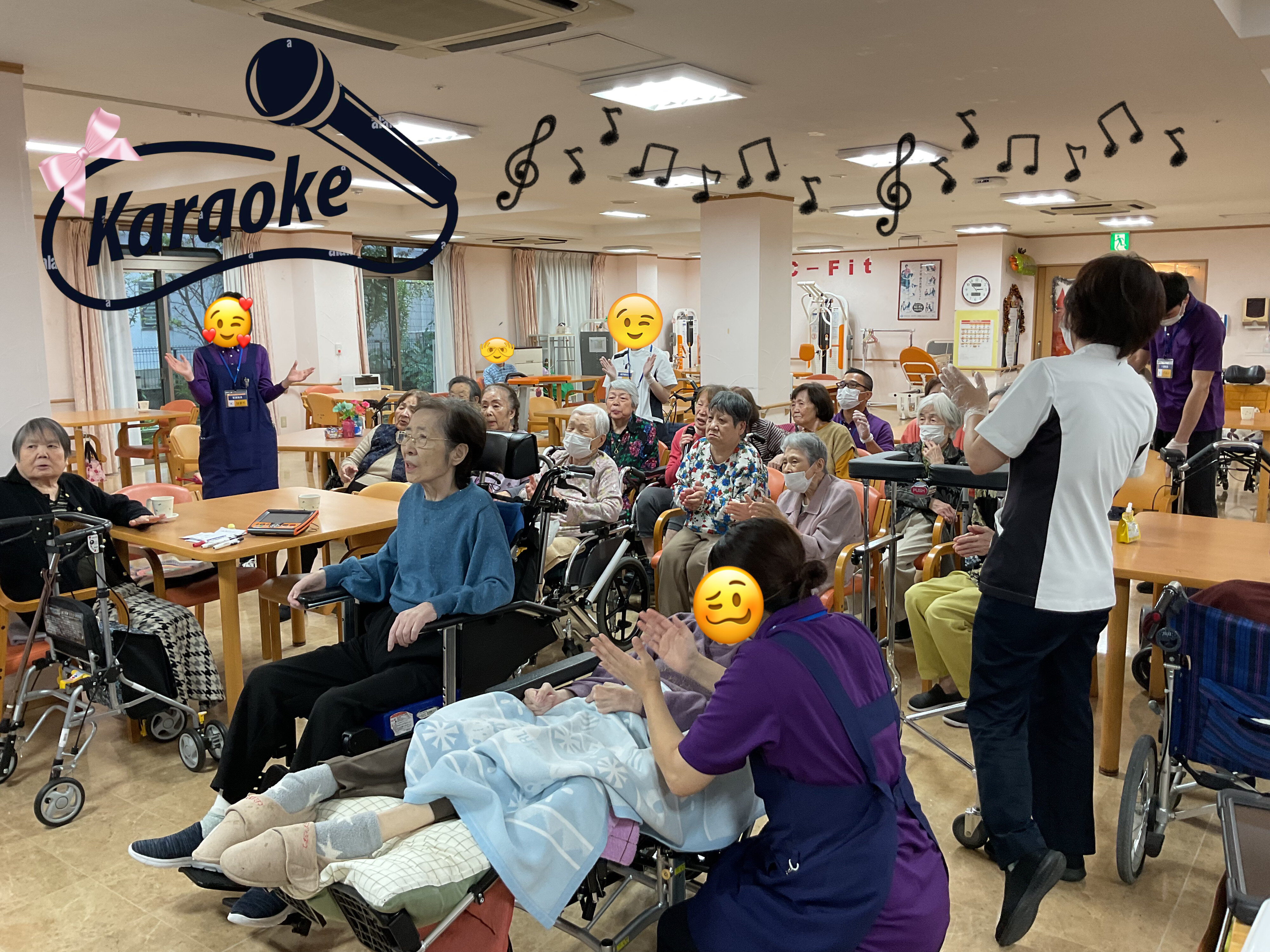 たくさんの方が食堂に集合し、カラオケを楽しまれていました♡