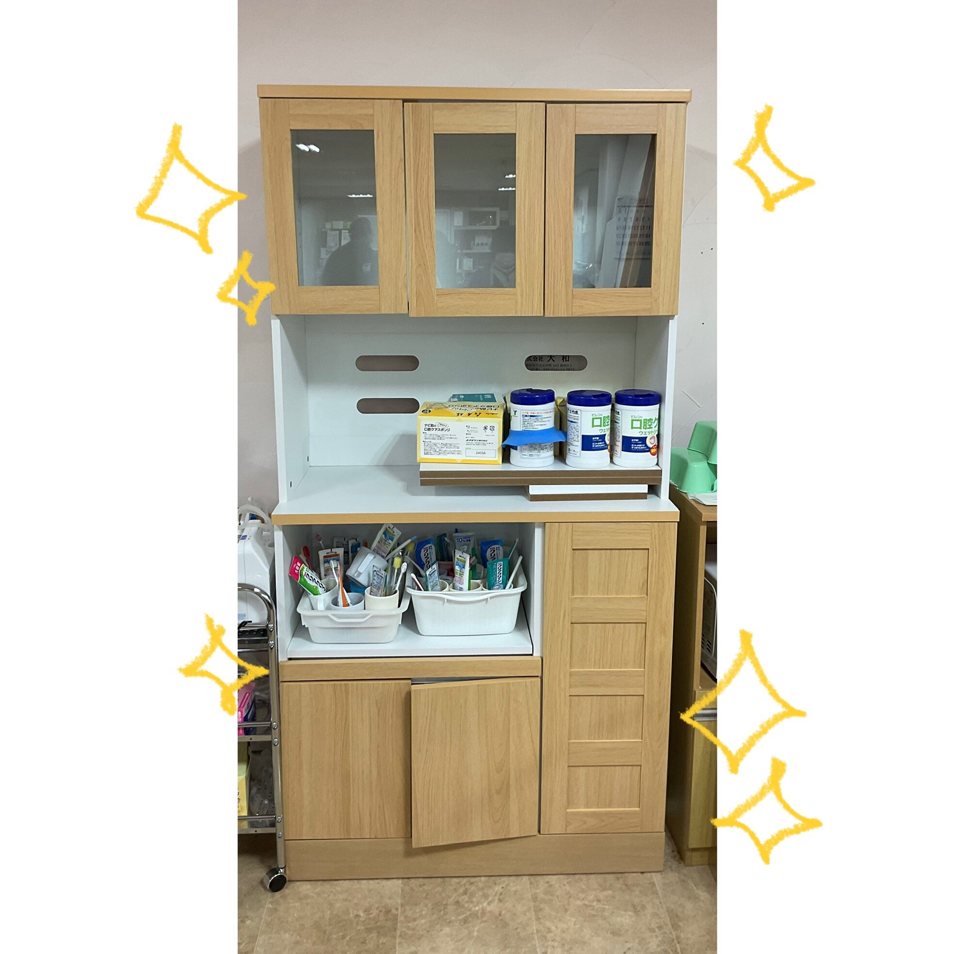 本日は、口腔ケア用品を置くための食器棚の作成です!