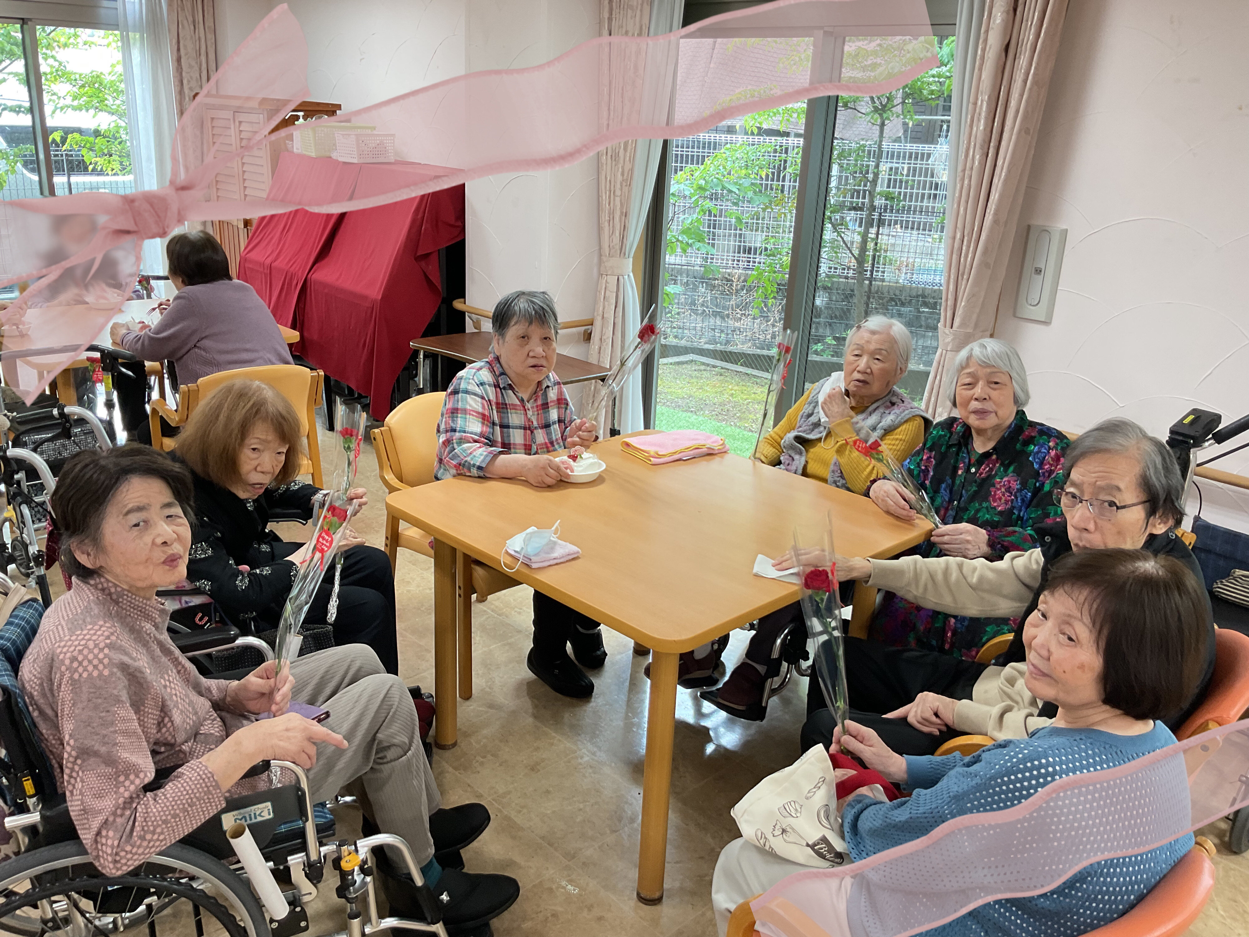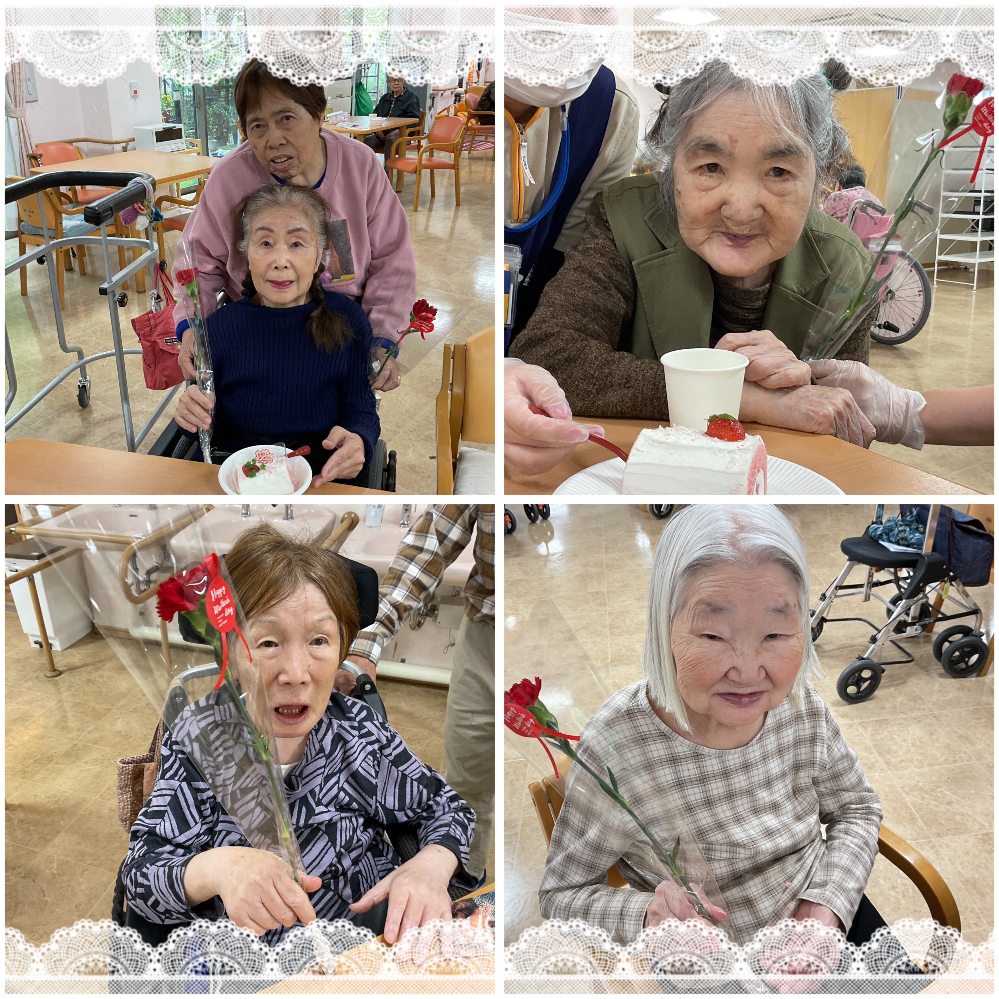 母の日にはカーネーションと共に、イチゴのロールケーキを提供しました♪