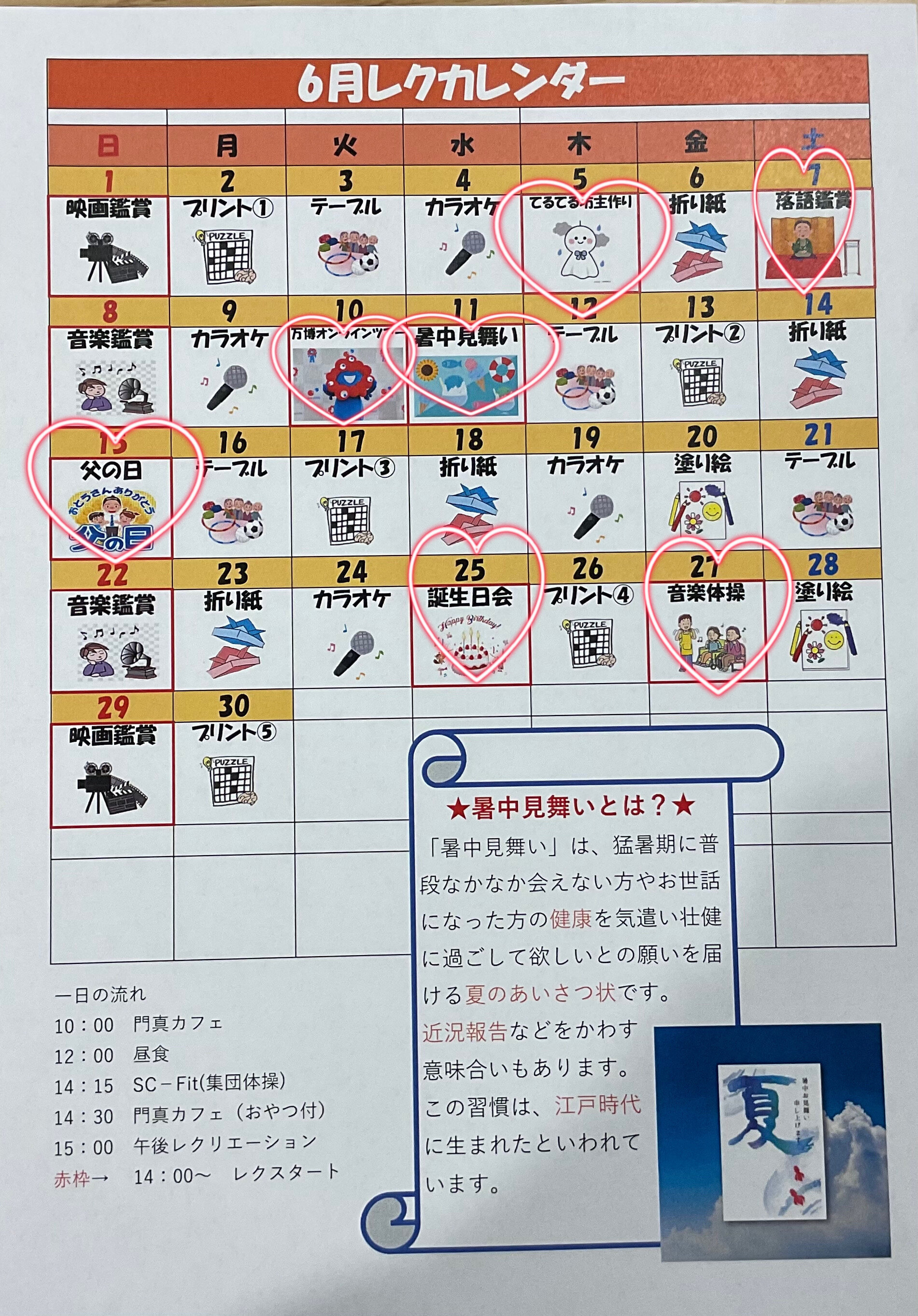 今月はたくさんレクありますね╰(*´︶`*)╯♡