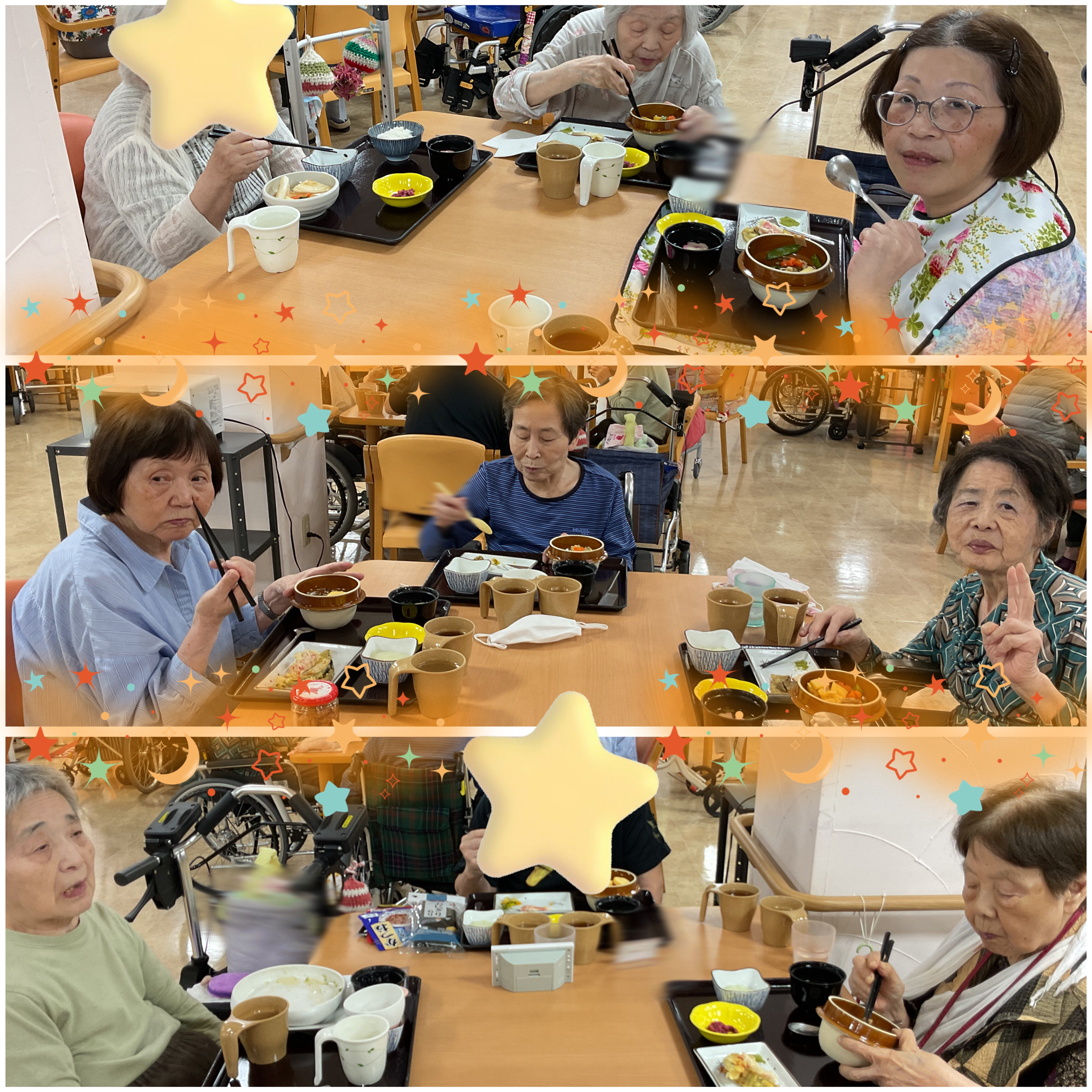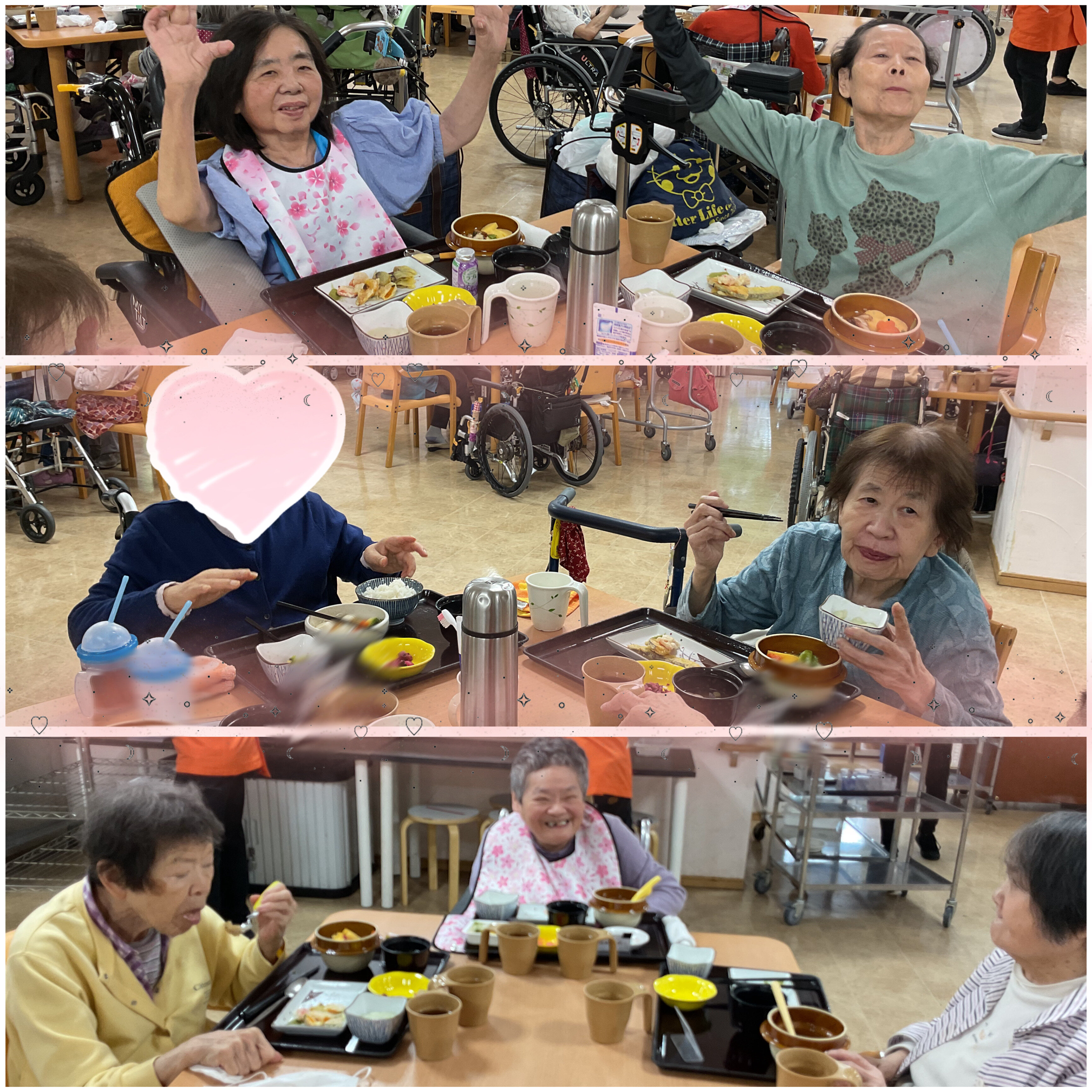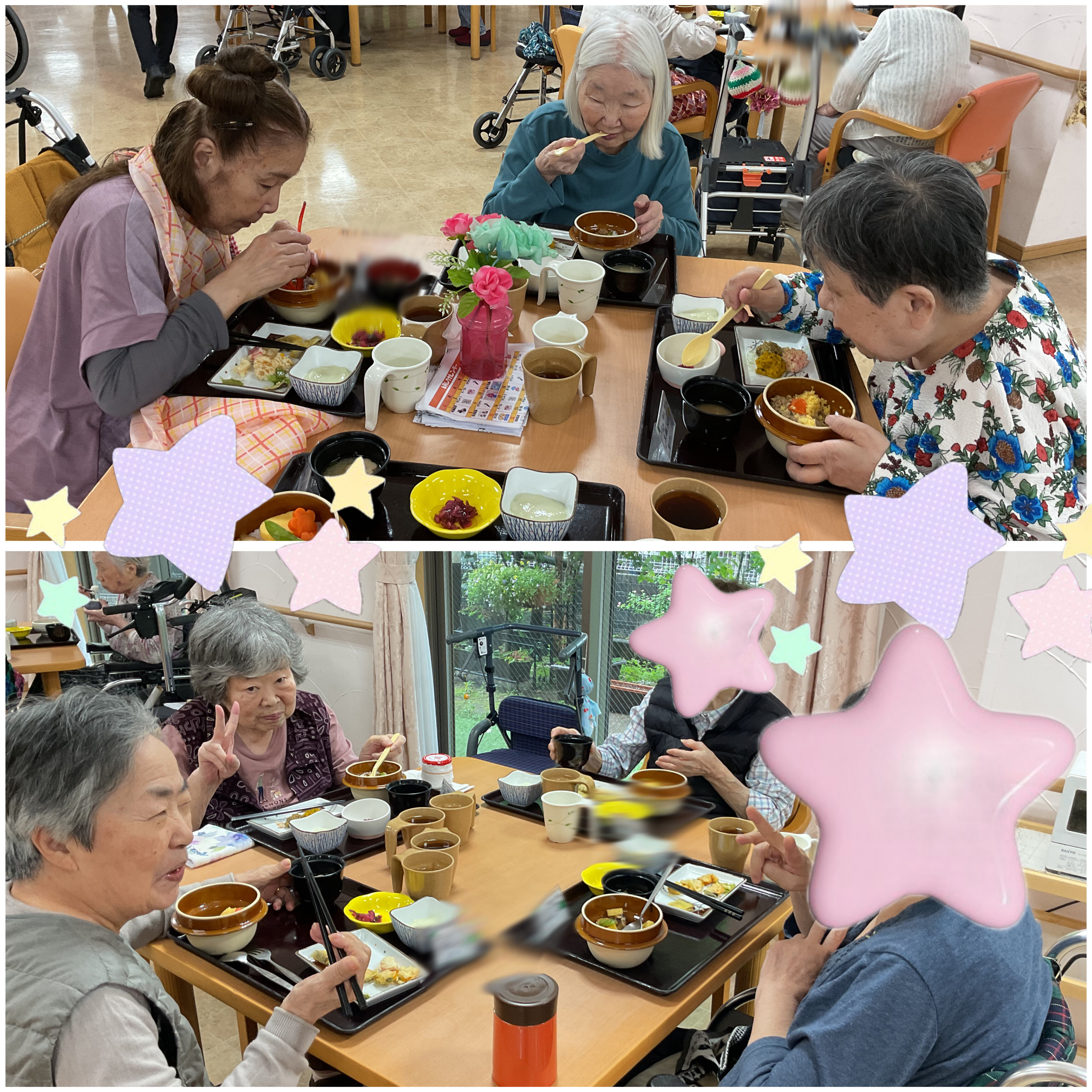 6月11日昼食のご馳走メニューは釜めしと天ぷらでした╰(*´︶`*)╯