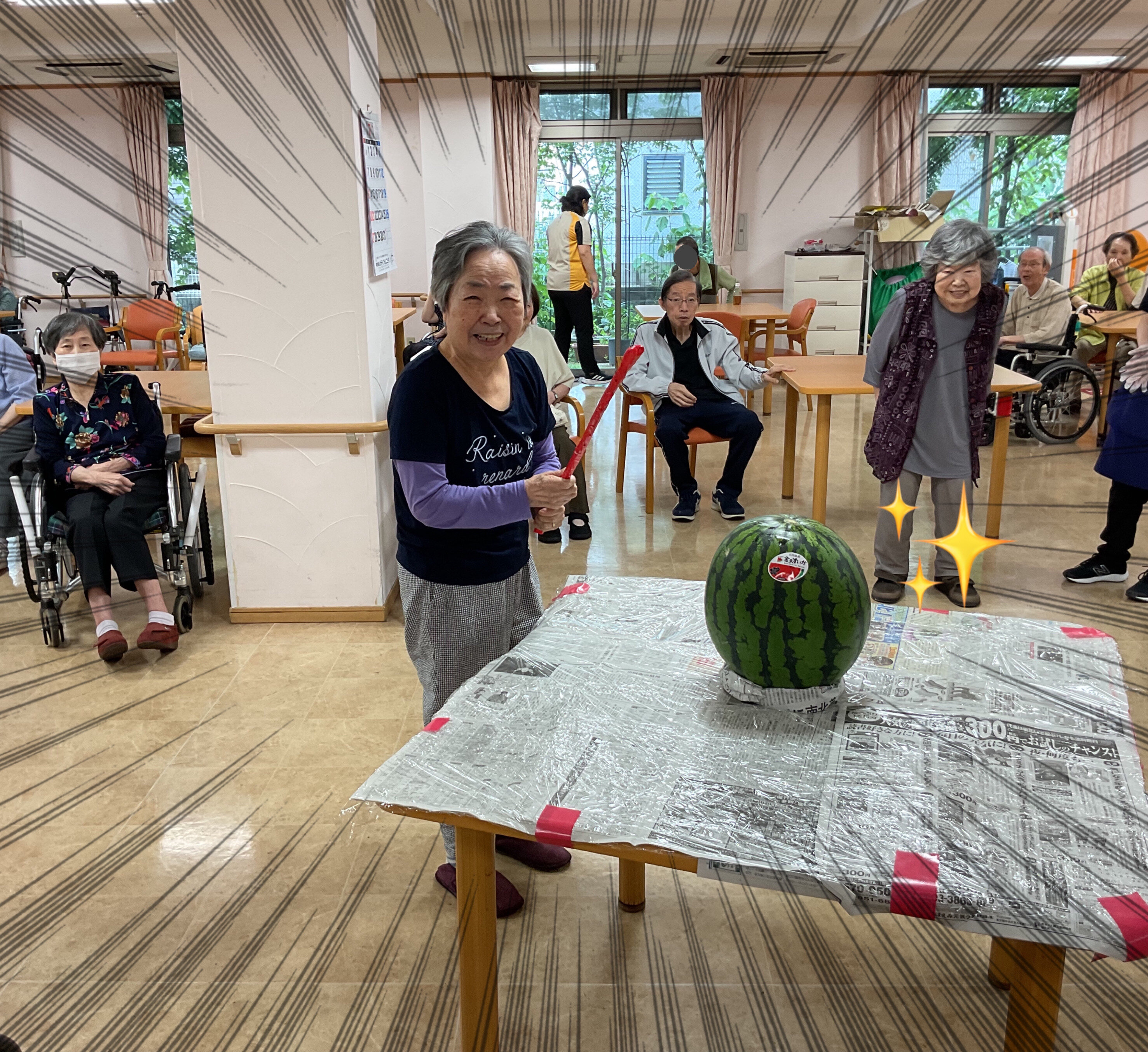 夏といえばスイカ!という事で、スイカ割りを実施しました(๑˃̵ᴗ˂̵)