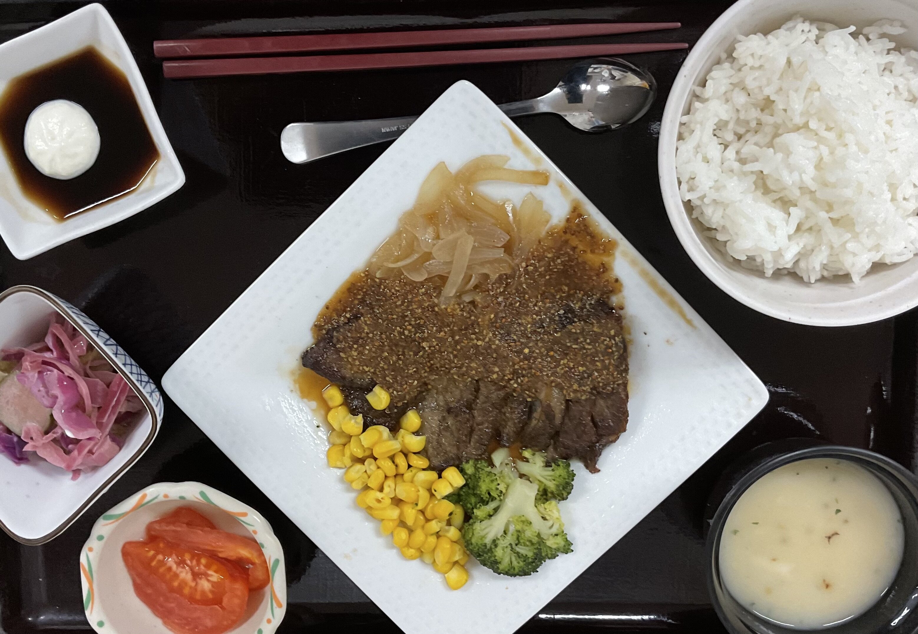なんと 10月15日の昼食は 豪華メニュー「ステーキ」!!!!