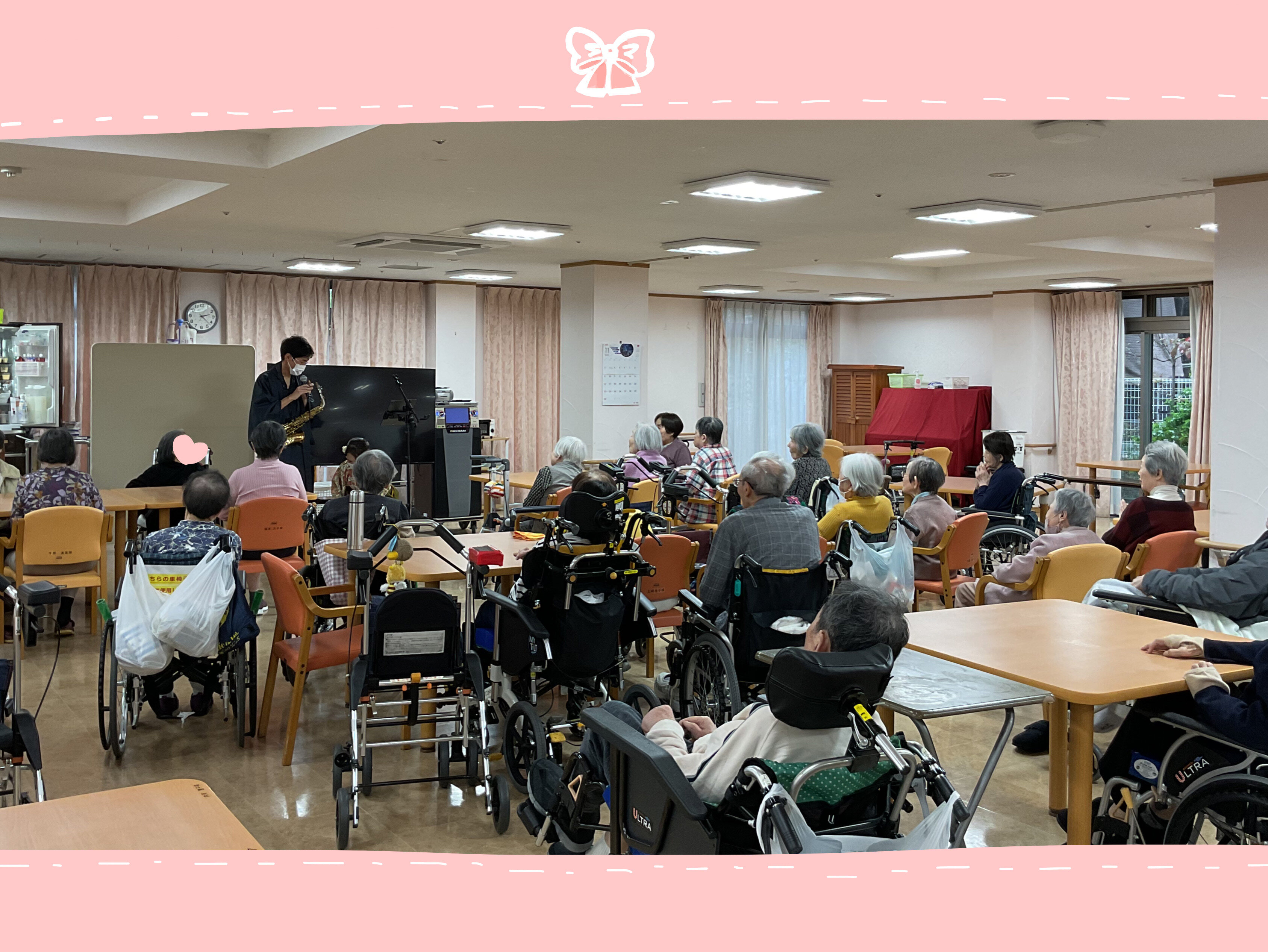生演奏はなかなか見る機会がない利用者様たち、とっても素敵な演奏で感動したとお声をいただきました!