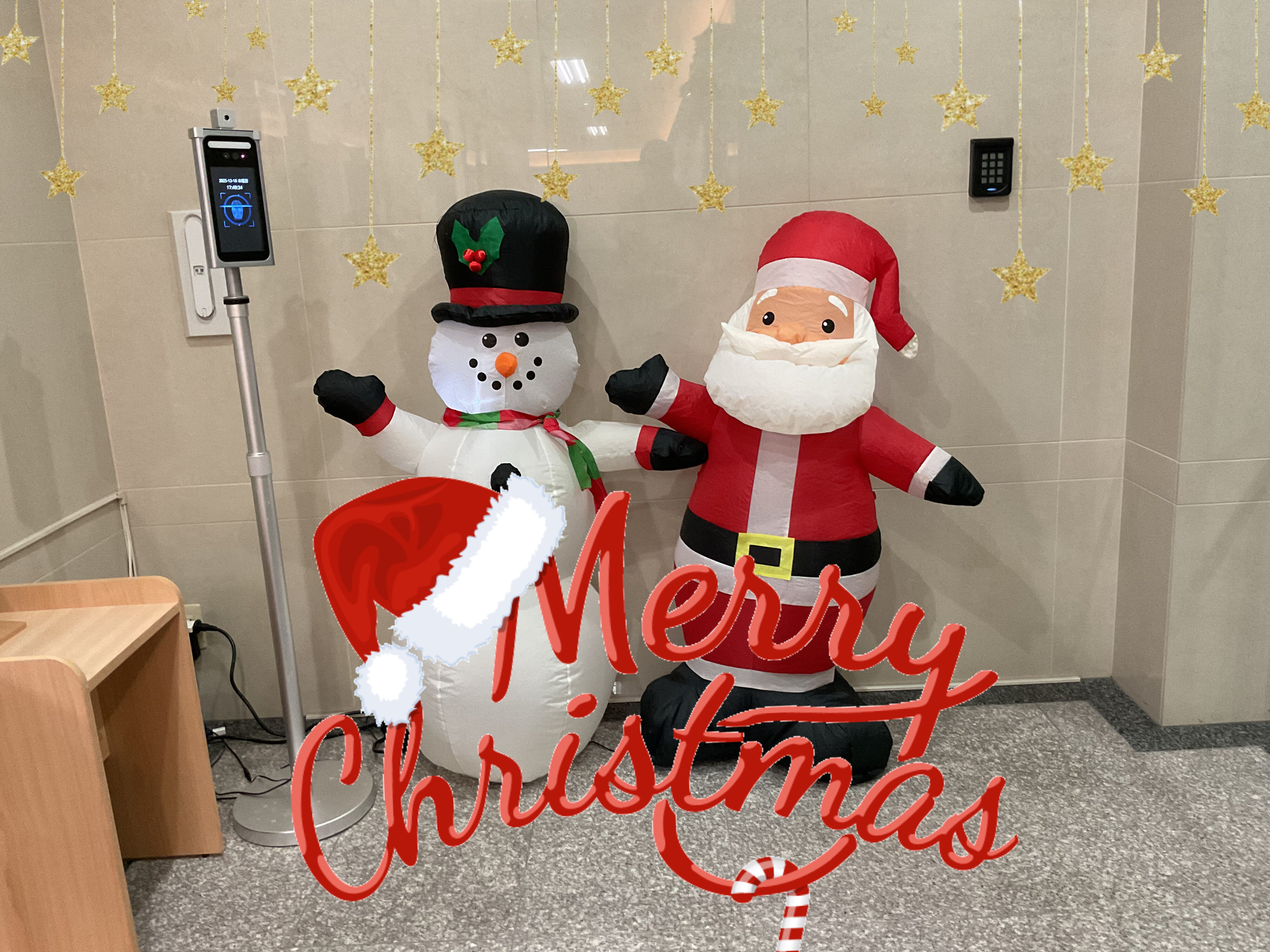 毎年お決まりのこの雪だるまとサンタクロースが来館者様をお出迎えします⭐︎