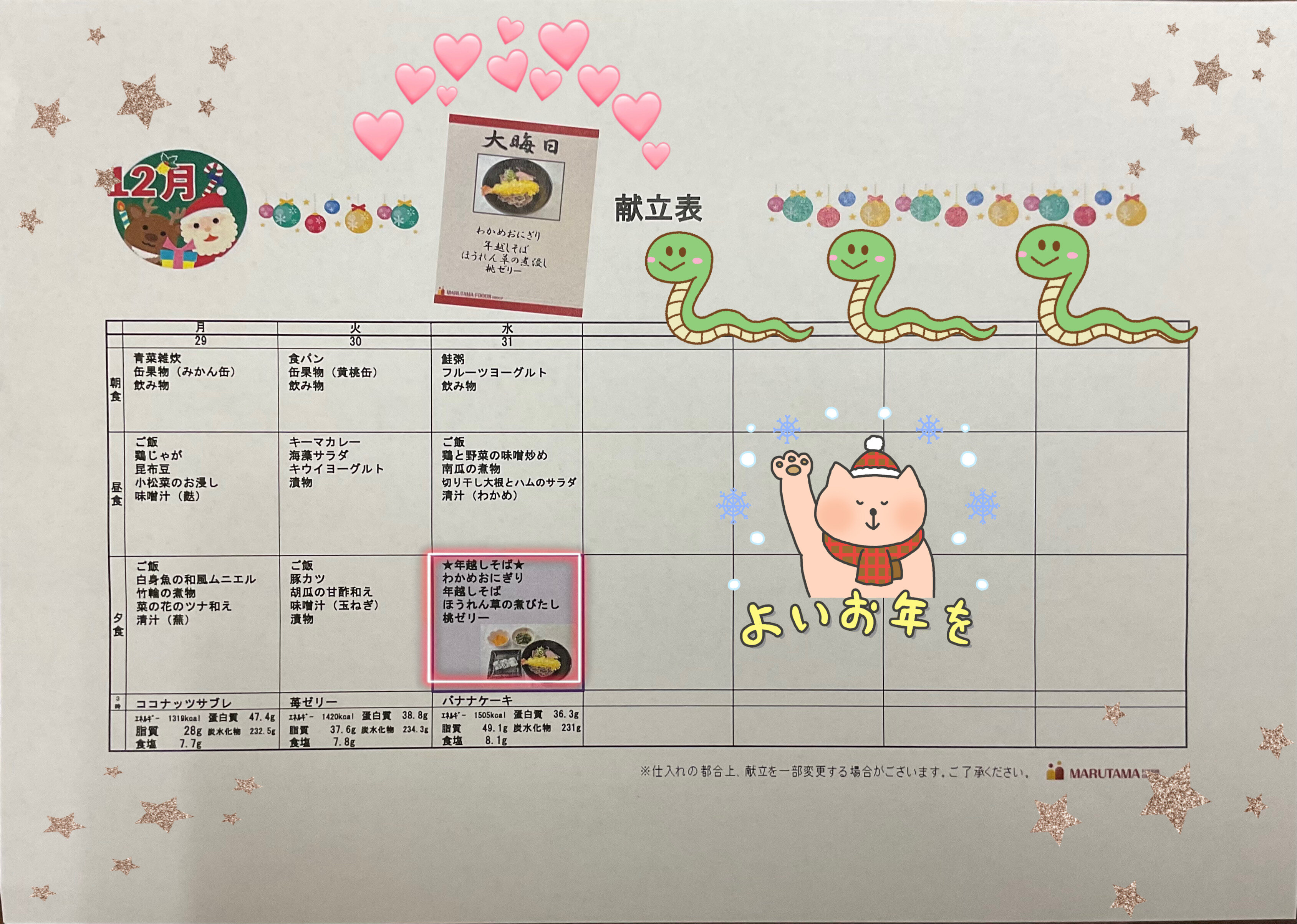 今年最後のメニュー表です╰(*´︶`*)╯♡