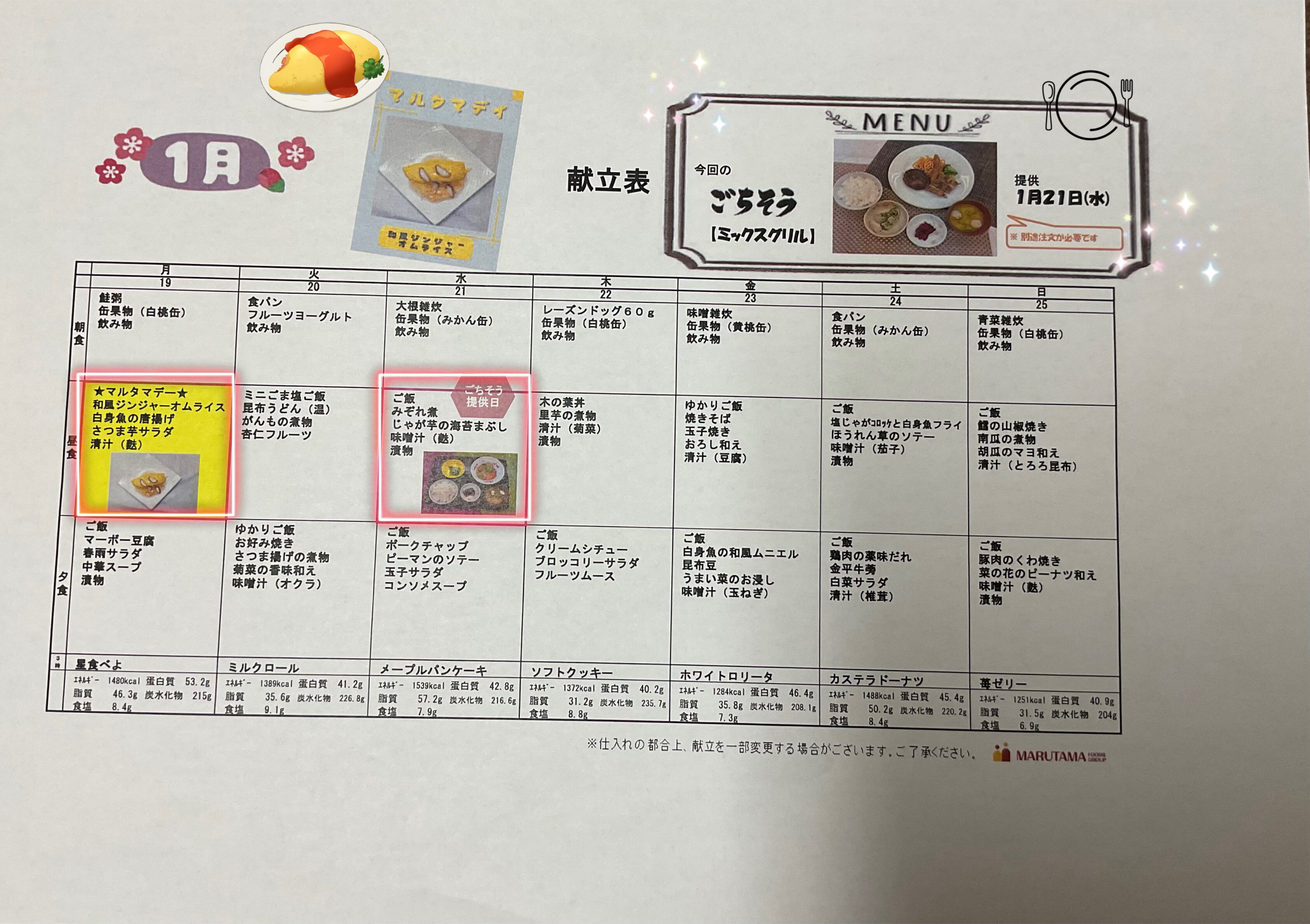 1/21(水)は、ごちそうメニューでミックスグルメですね♡╰(*´︶`*)╯♡