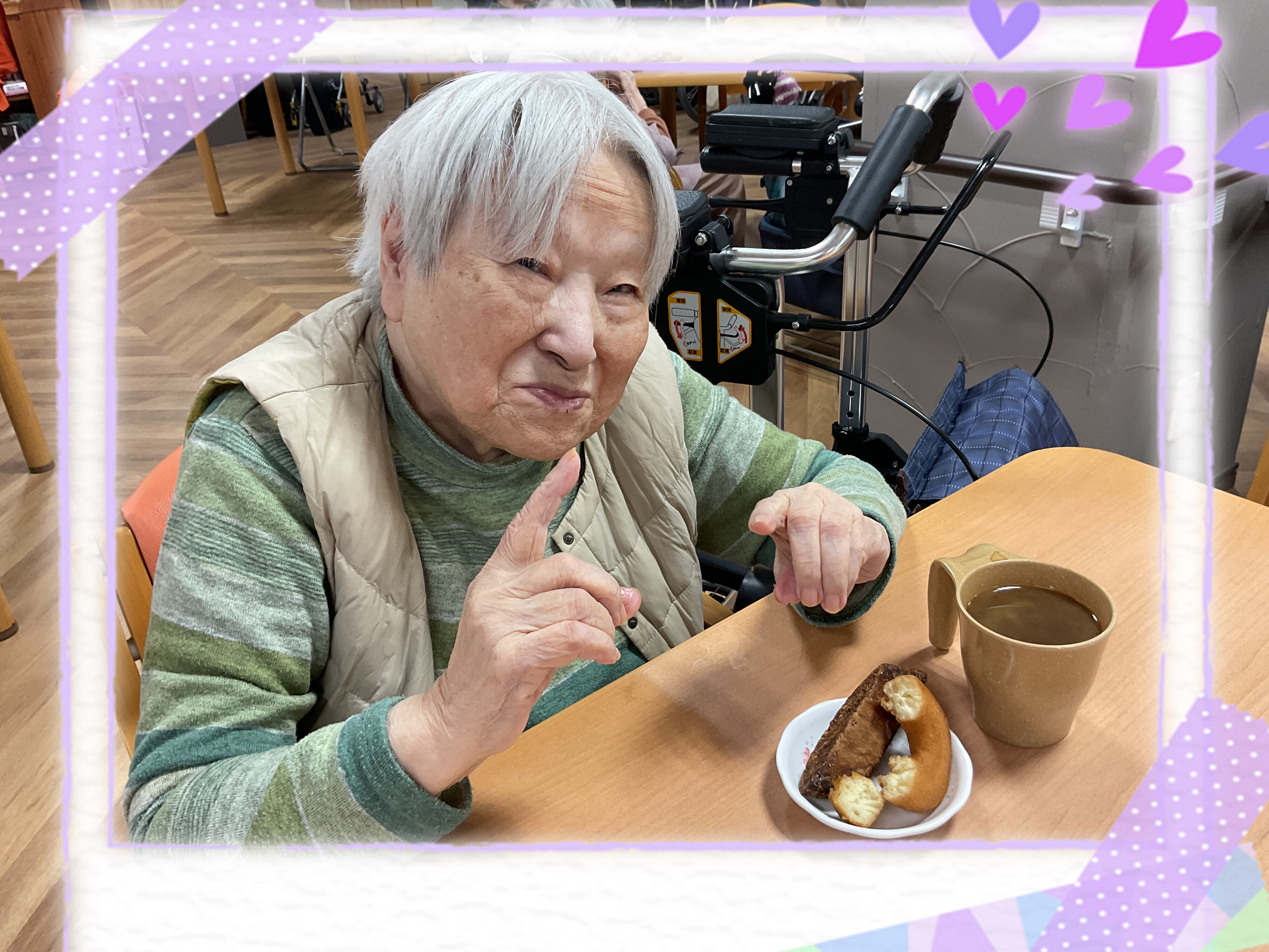 この日のおやつは、ドーナツと黒棒でした(๑˃̵ᴗ˂̵)