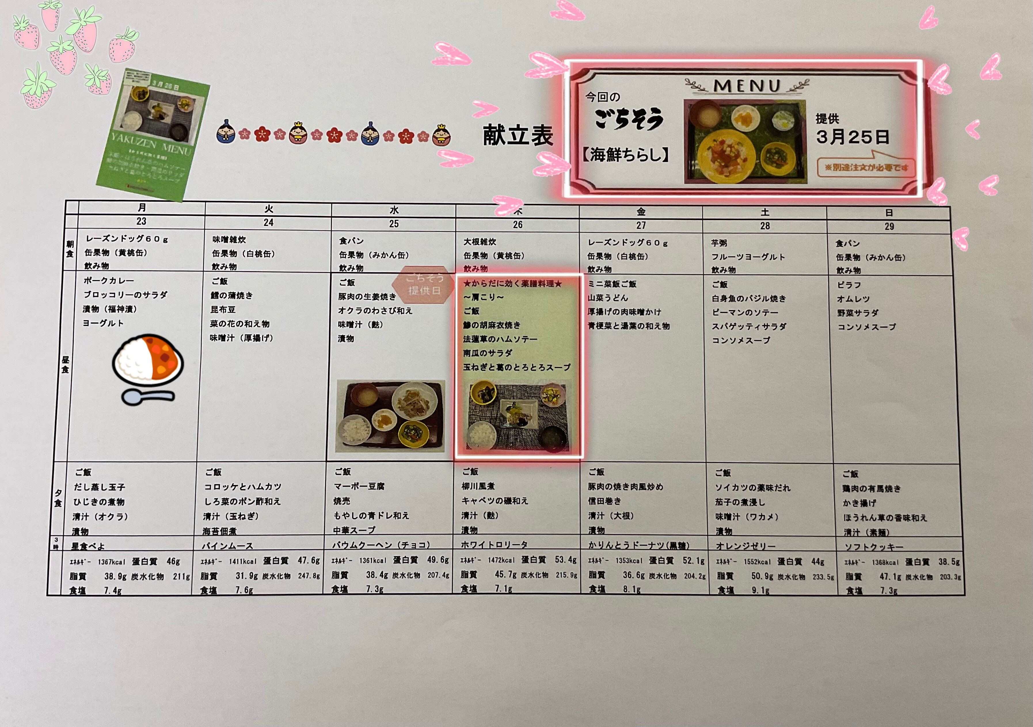 3/25(水)ごちそうメニューで海鮮ちらし!