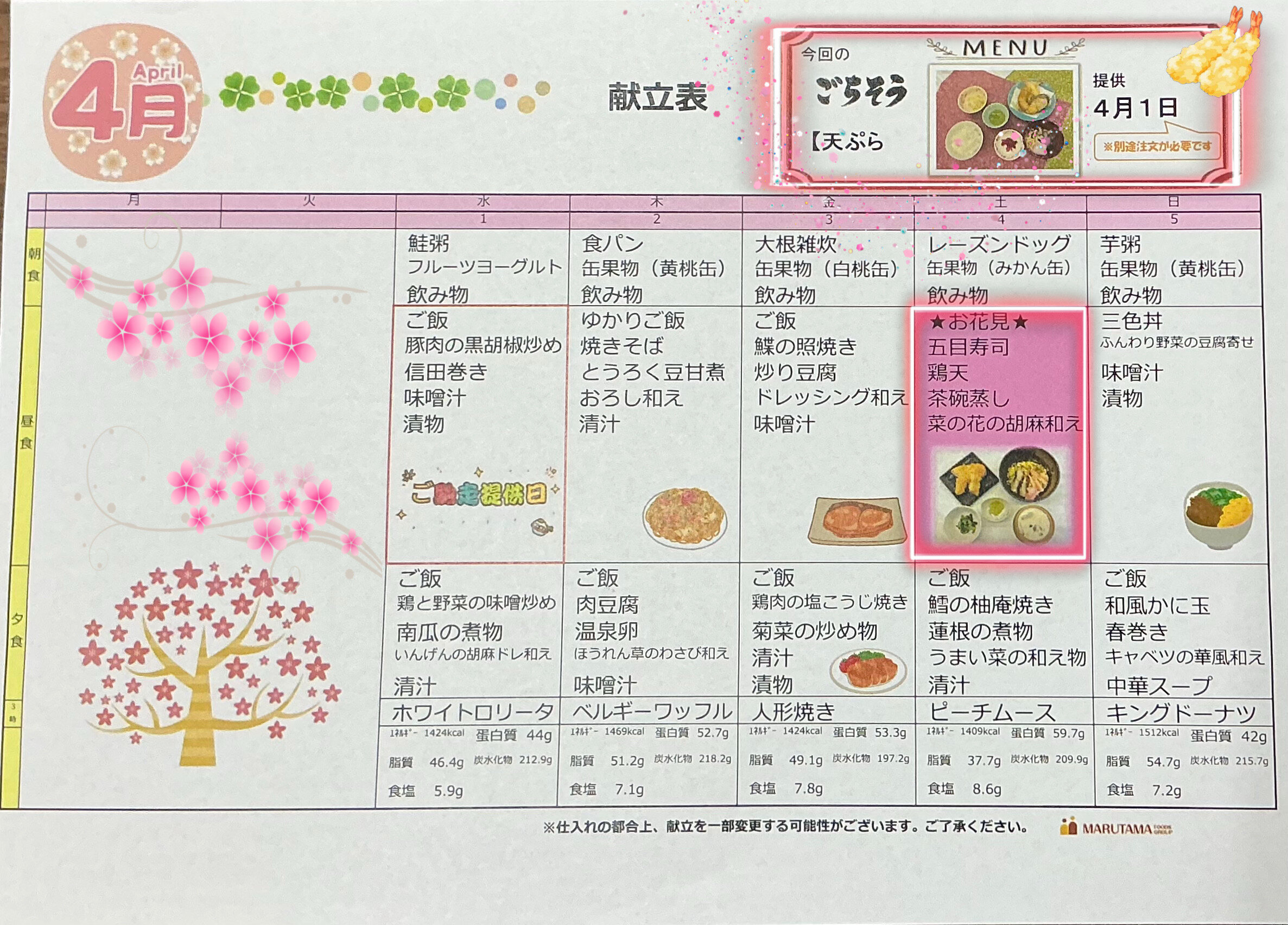 4日はお花見メニューです♡ 桜も見頃になっていますね♪