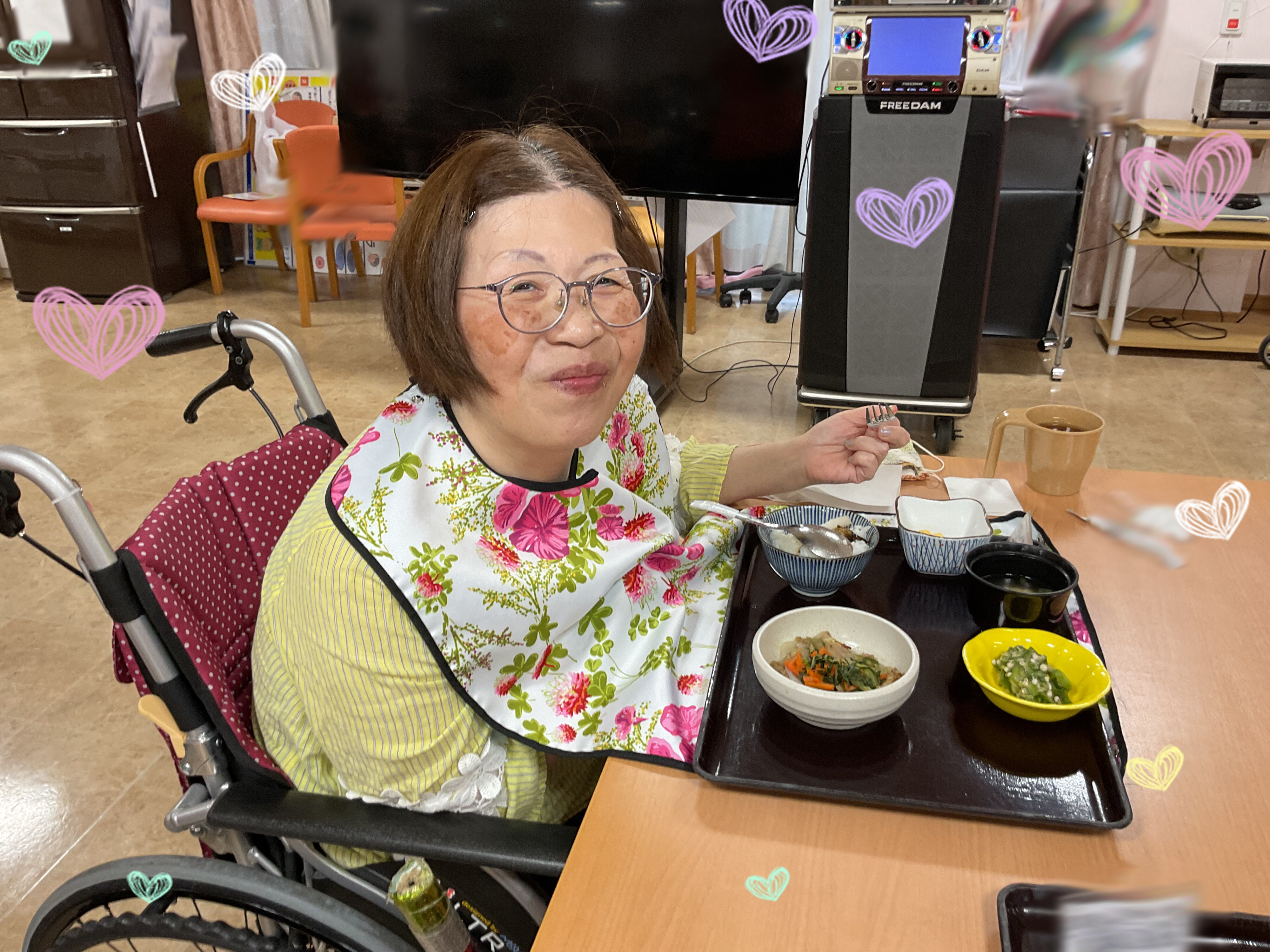 その様子を見た介護士が「作り方教えてください」と一緒に作っているときの様子です(๑˃̵ᴗ˂̵)