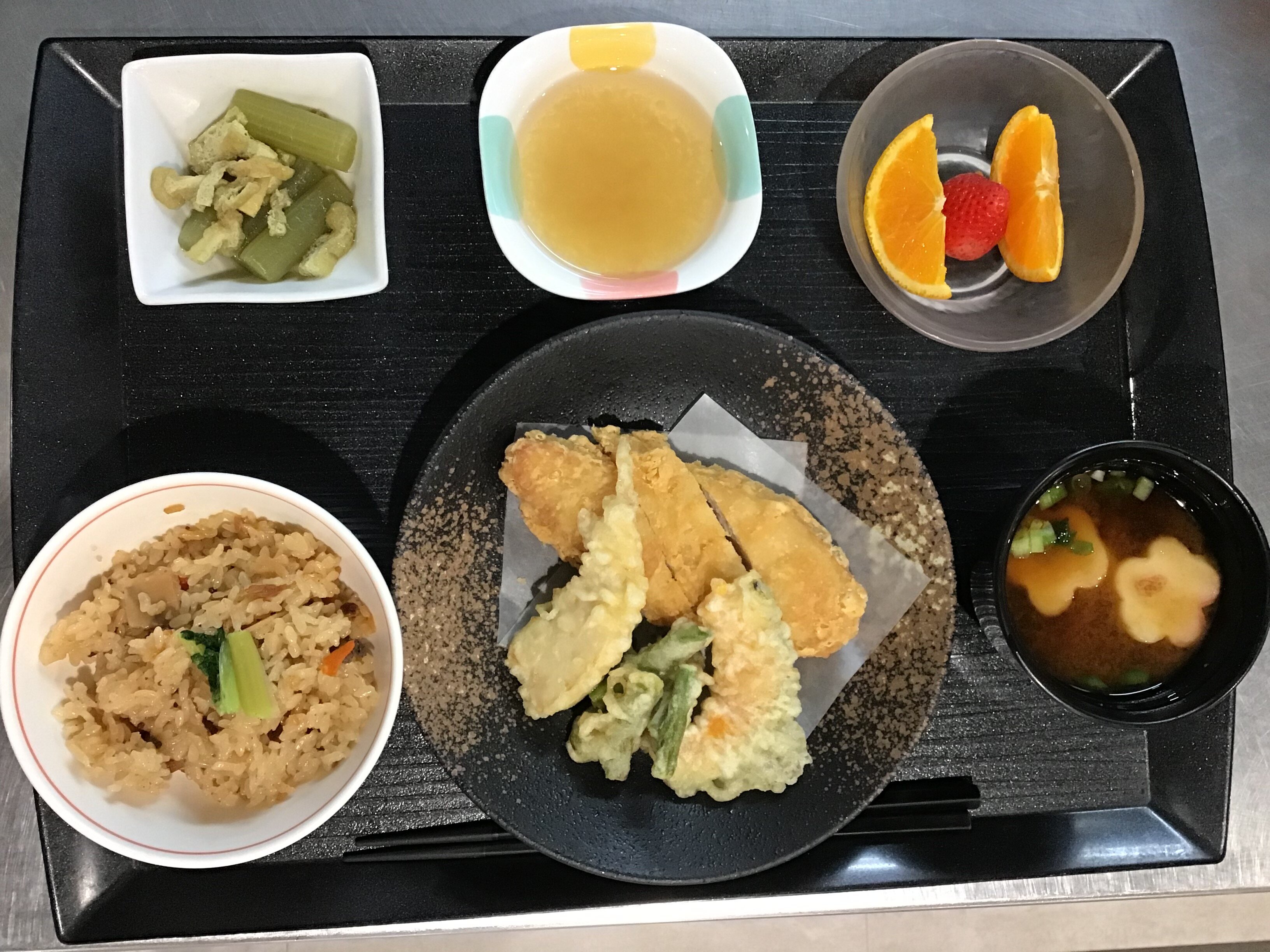 特に入居者様に好評だったのは、揚げたての天ぷら。 「家ではなかなか揚げ物をしないから嬉しい」といったお声もいただき、スタッフ一同、みなさまの美味しそうに召し上がる姿に元気をいただきました。