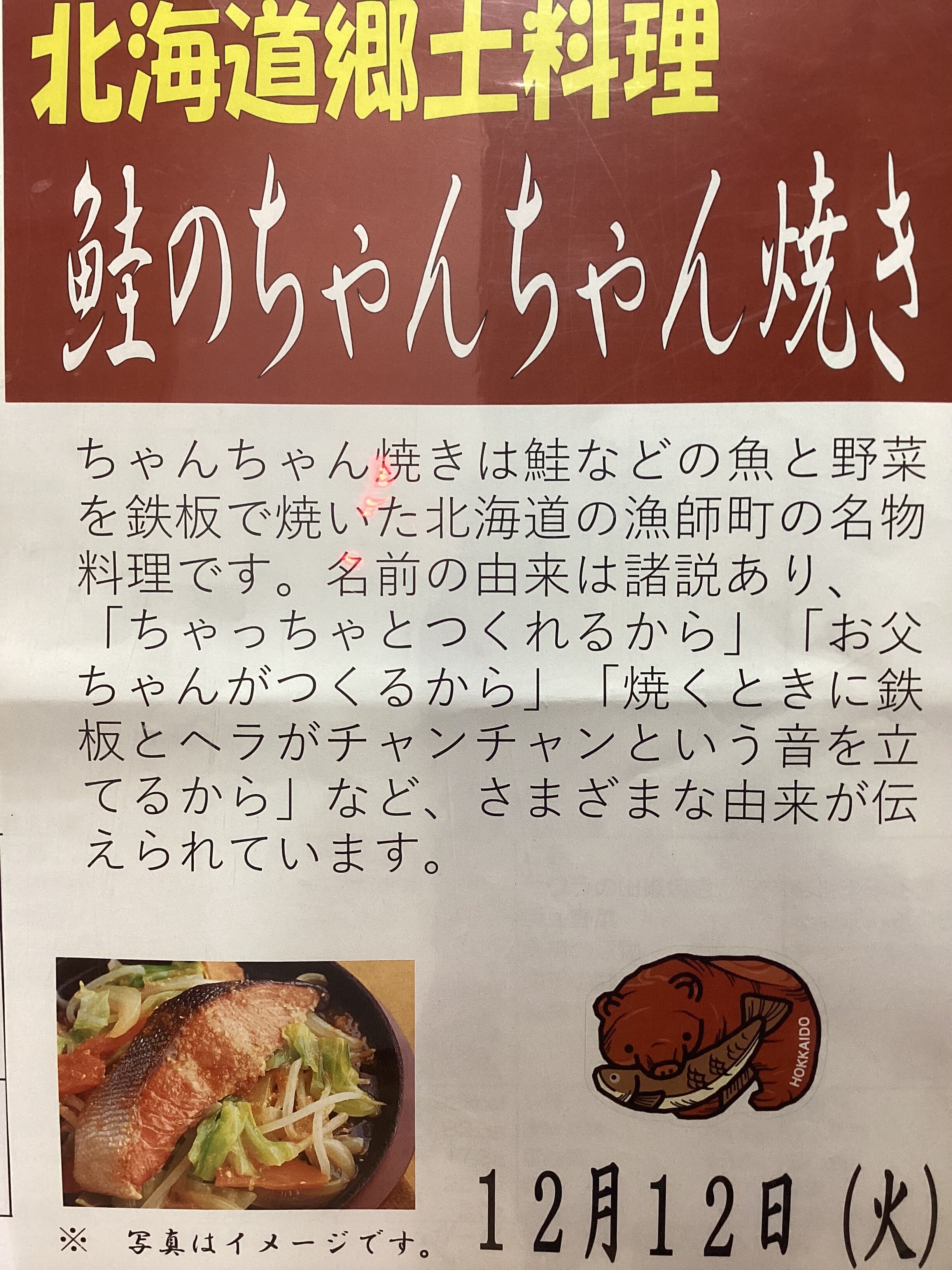 今週の火曜日の昼食は、〈北海道ご当地メニュー〉となっています!