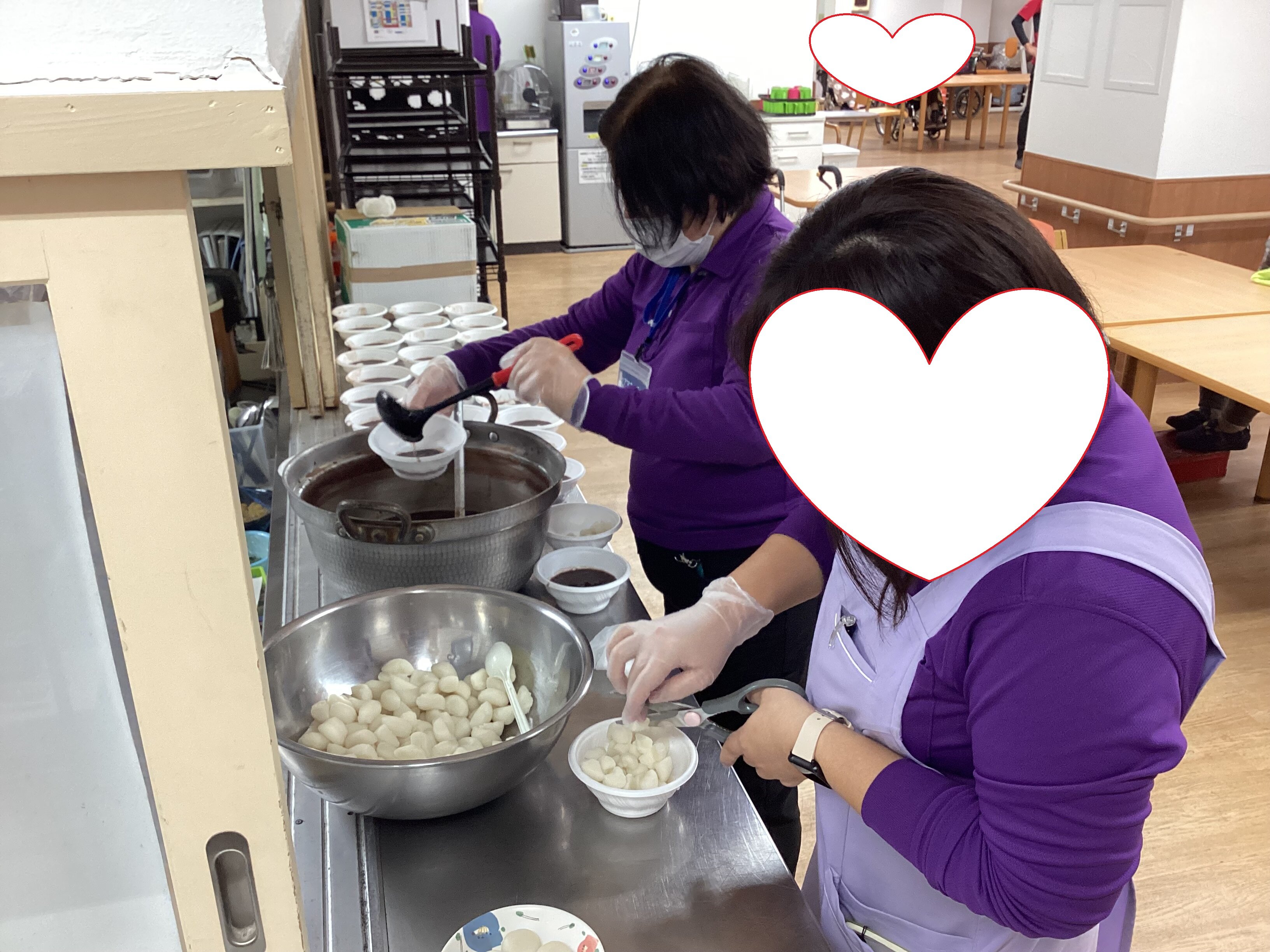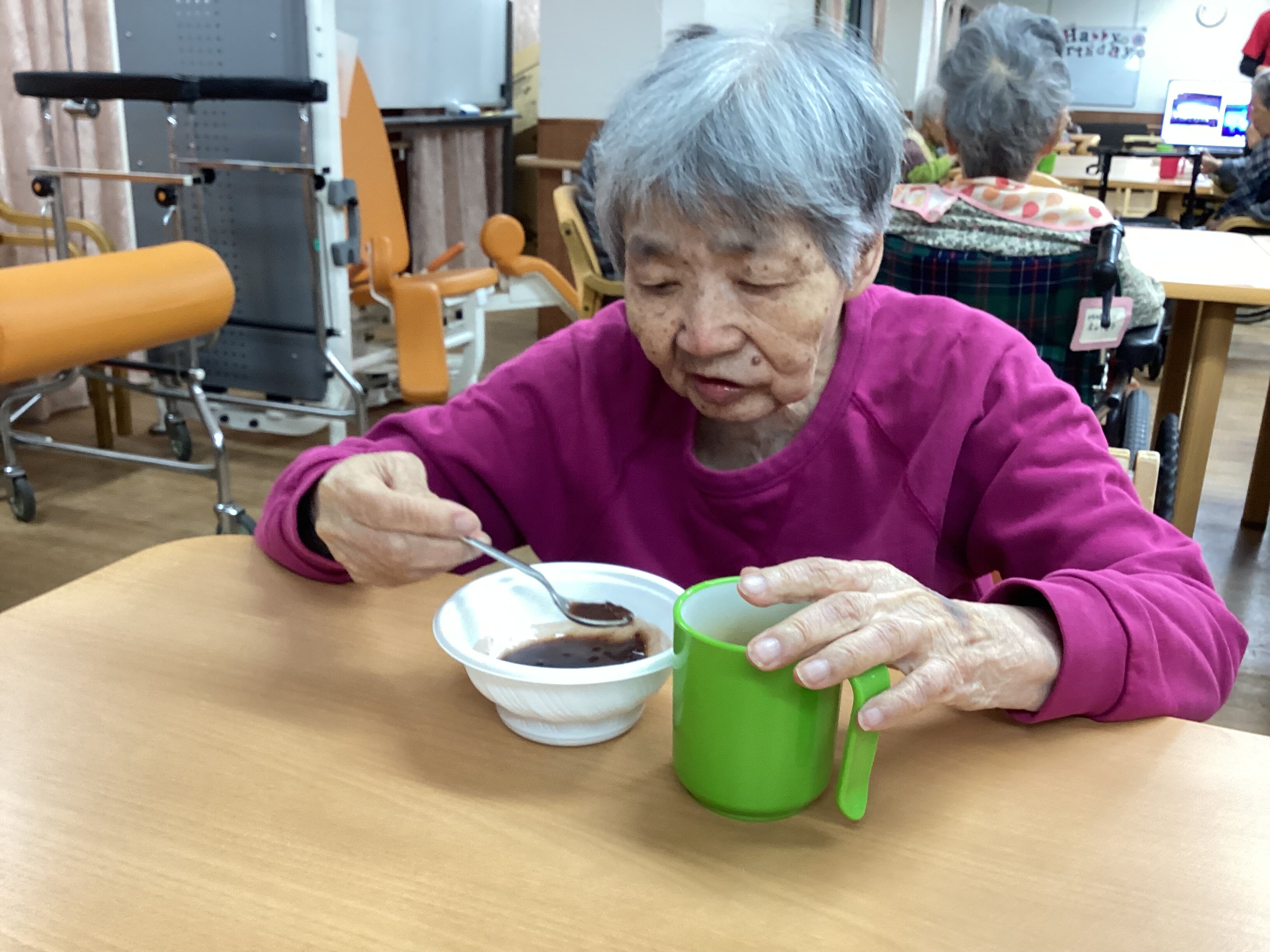 本日は、手作りおやつレクで白玉ぜんざいを召し上がっていただいた時のご様子をお伝えいたします!