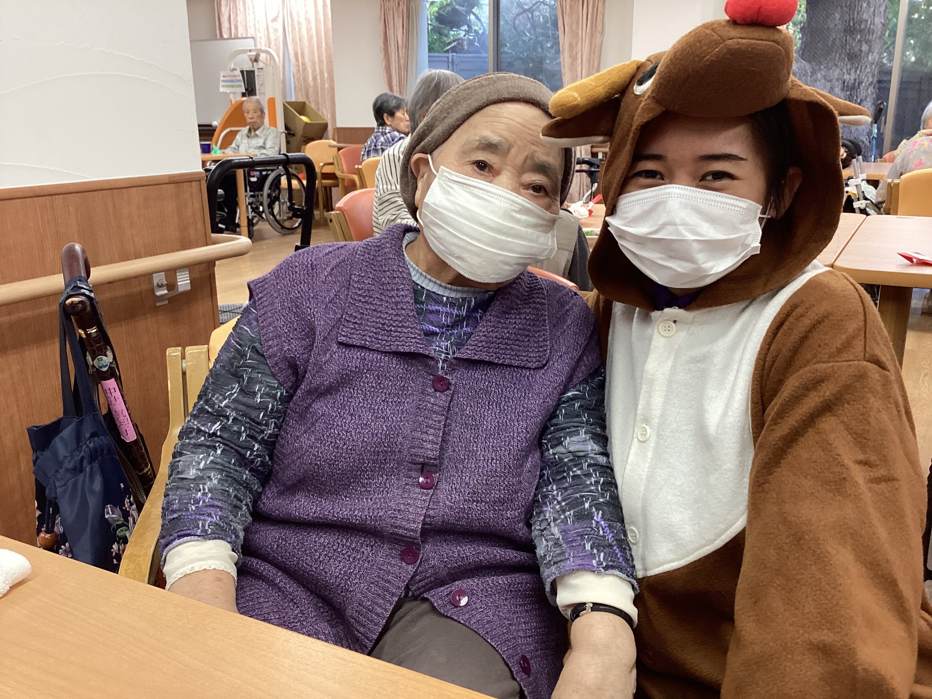 トナカイに扮したヘルパーさん、介護士さんともパシャリ(*'▽')