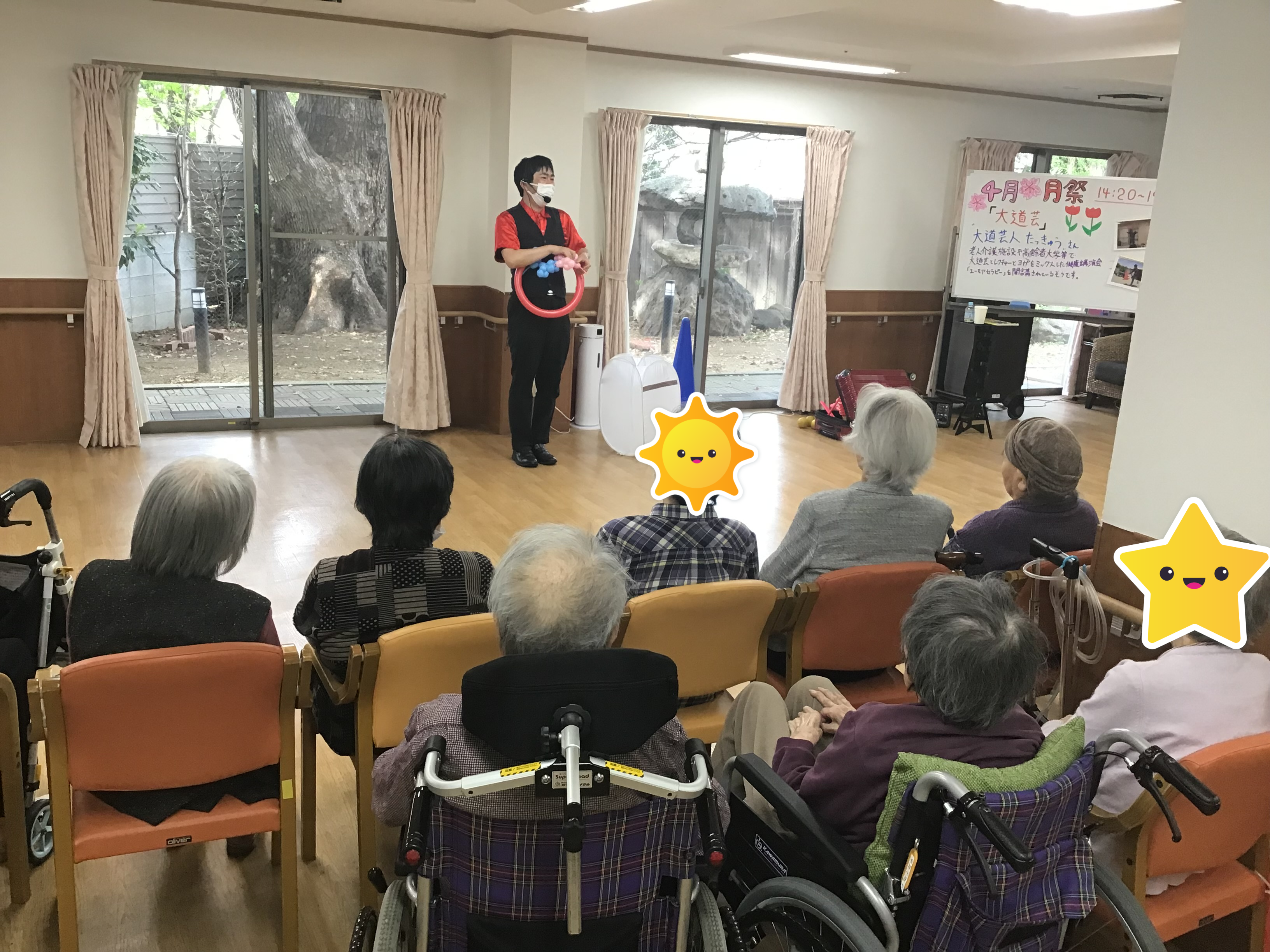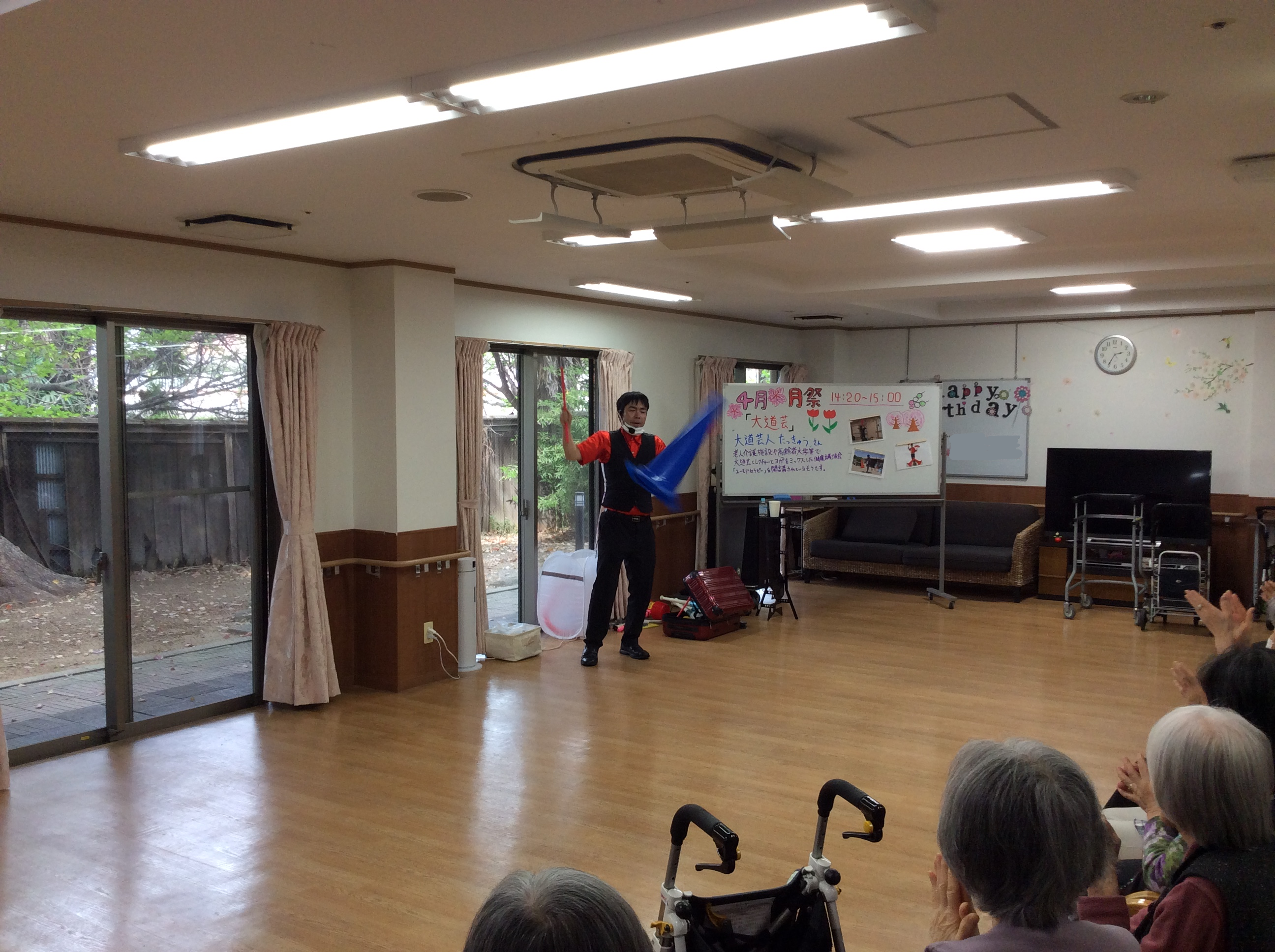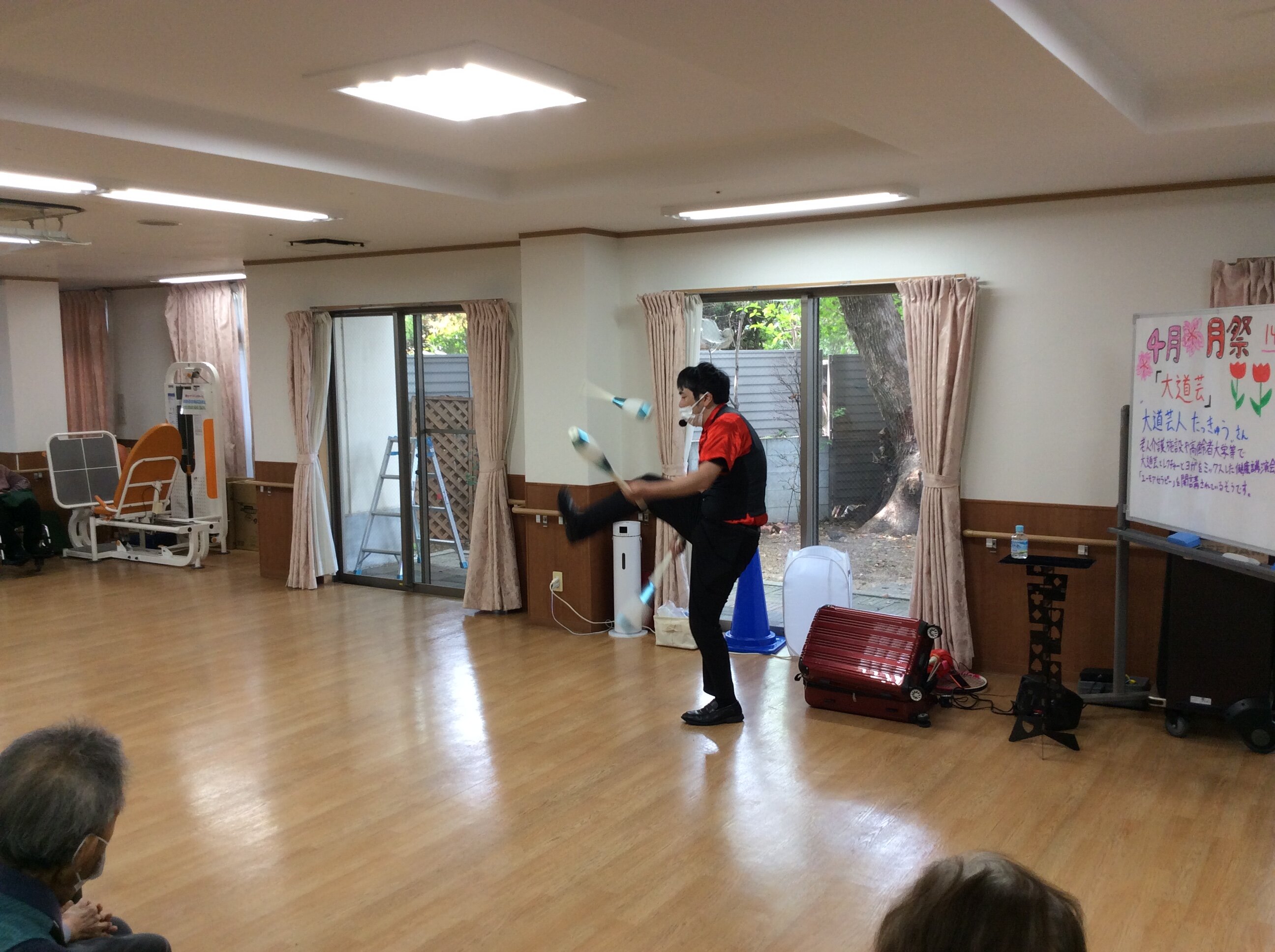 先日の卯月祭では大道芸人の「たっきゅうさん」にお越しいただき、皆様の前で大道芸を披露して頂きました!!
