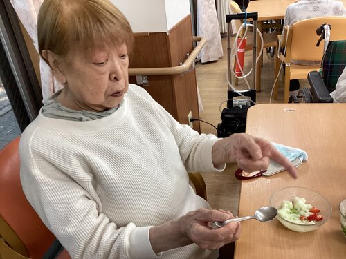 今回はリハリズムのお時間で御入居者の皆様と共にリラックスできる体操を行いました!