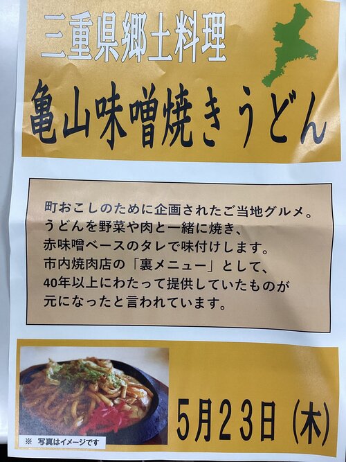 今日はご当地メニューの亀山みそ焼きうどんを頂きました!