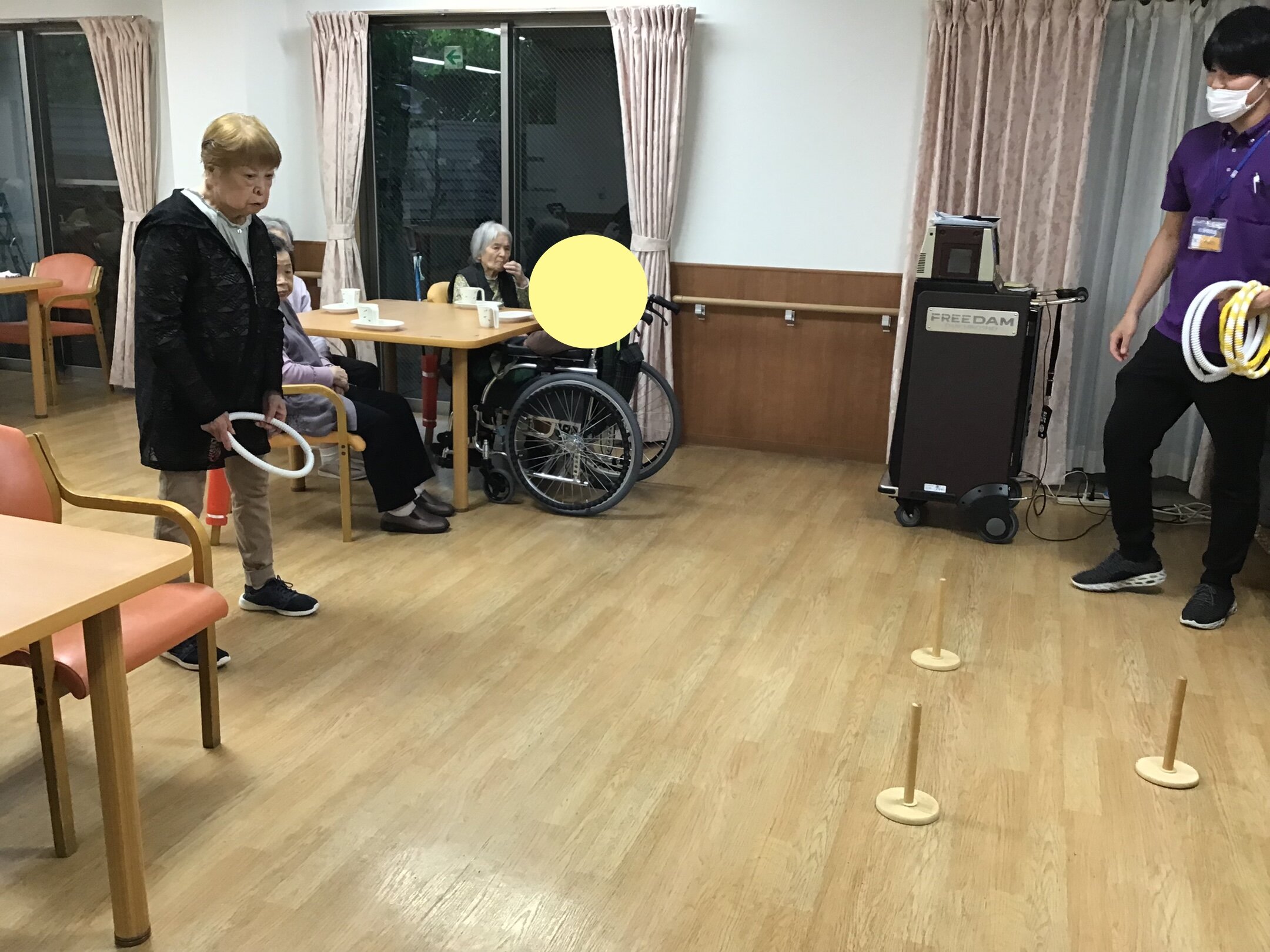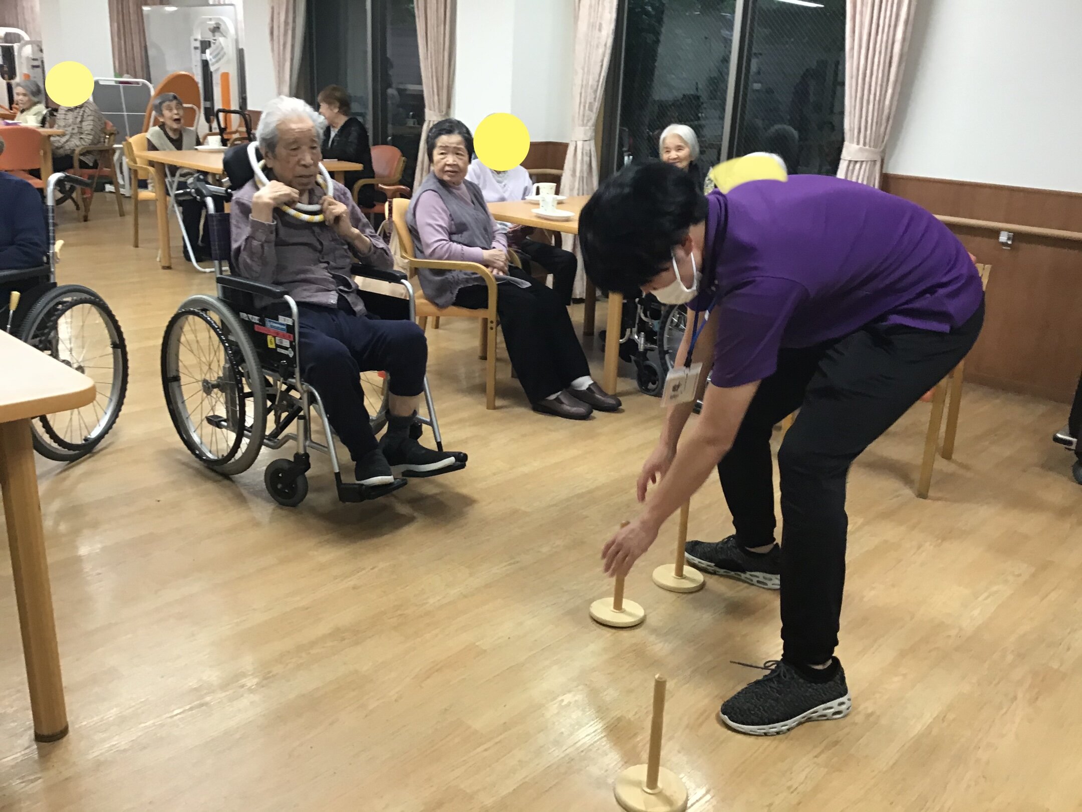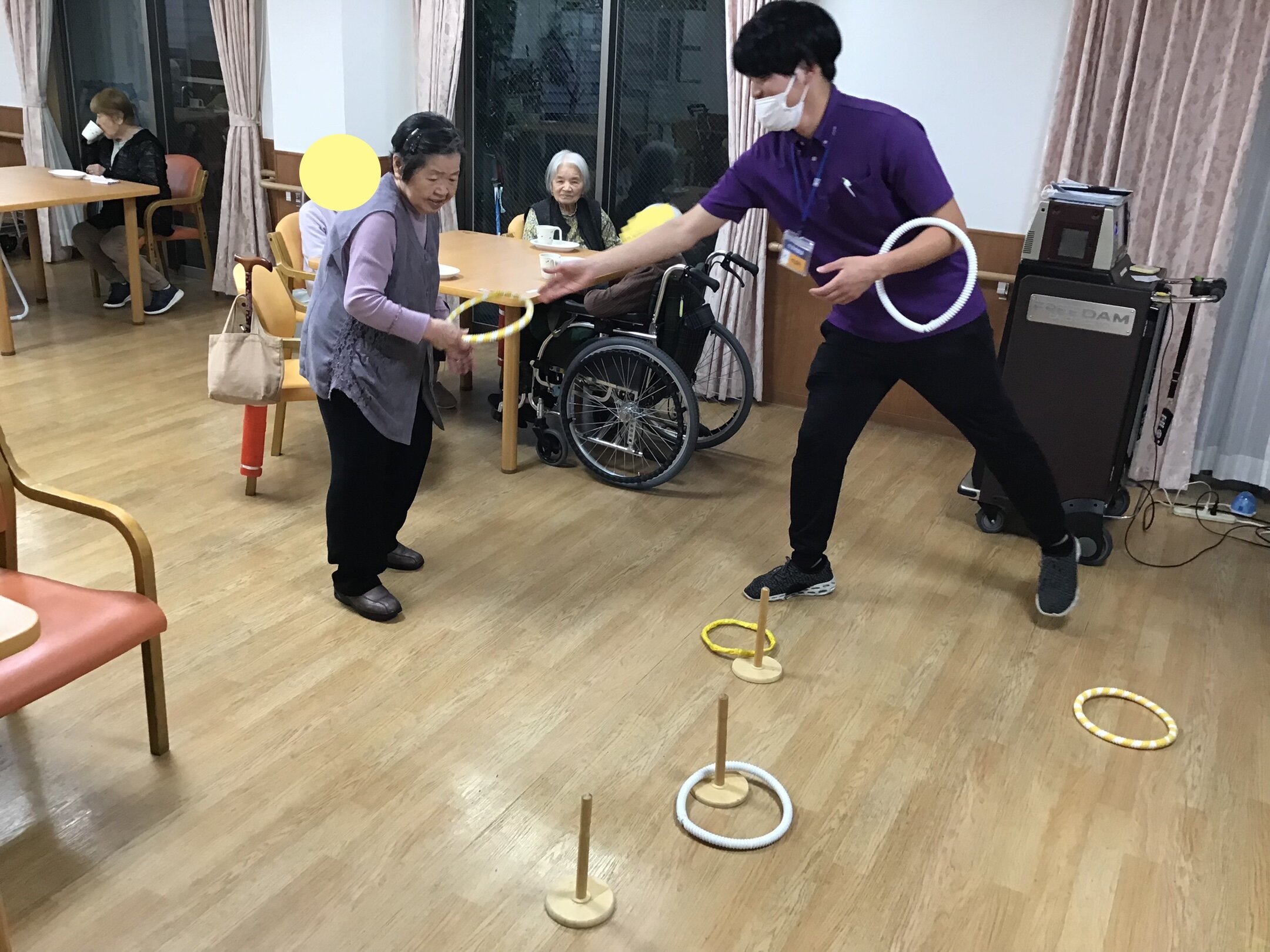 今回はレクリエーションの時間で輪投げを行いました。
