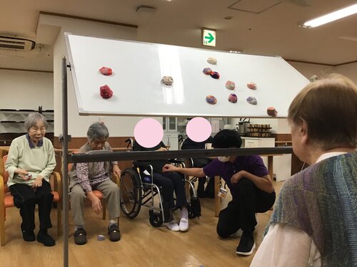 多く乗るとホワイトボードが傾き、傾いてお手玉が落ちた方が負けです(/・ω・)/