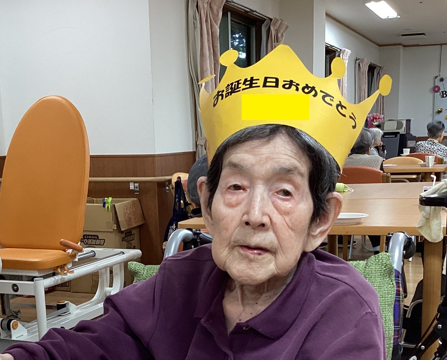 本日は、8月のお誕生日会の様子をお伝えいたします。8月は3名のお誕生日の方がおられ、なんと103歳を迎えられる方もいらっしゃいました(#^.^#)お元気で素晴らしいです。毎日の運動と健康管理の賜物です!