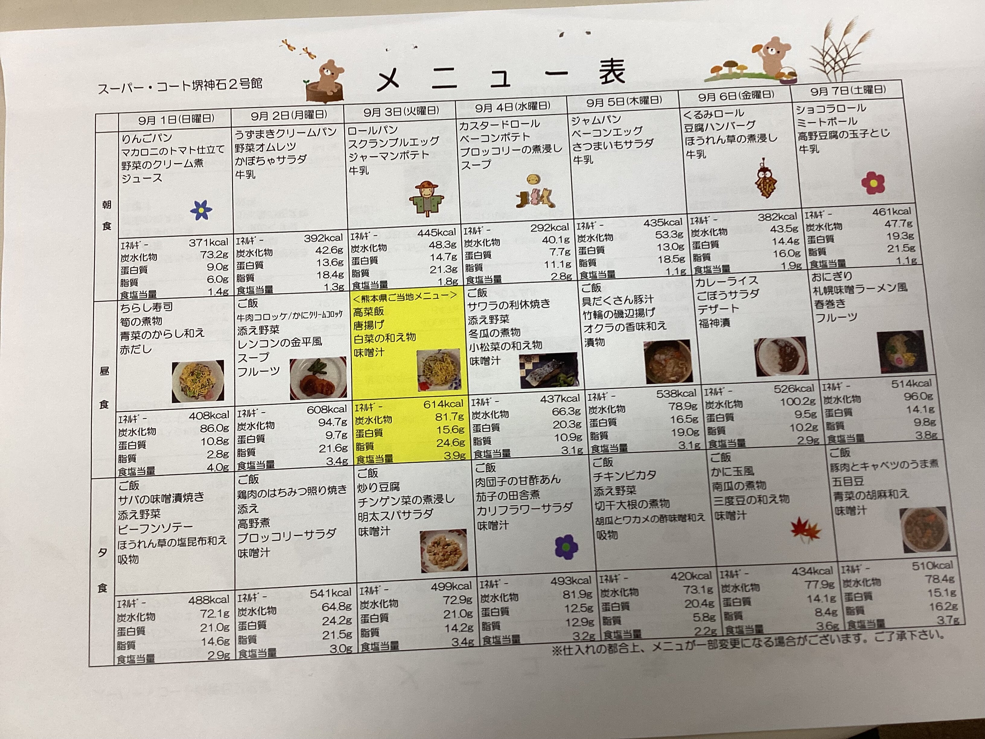 9/1-9/7の献立の紹介をしたいと思います。
