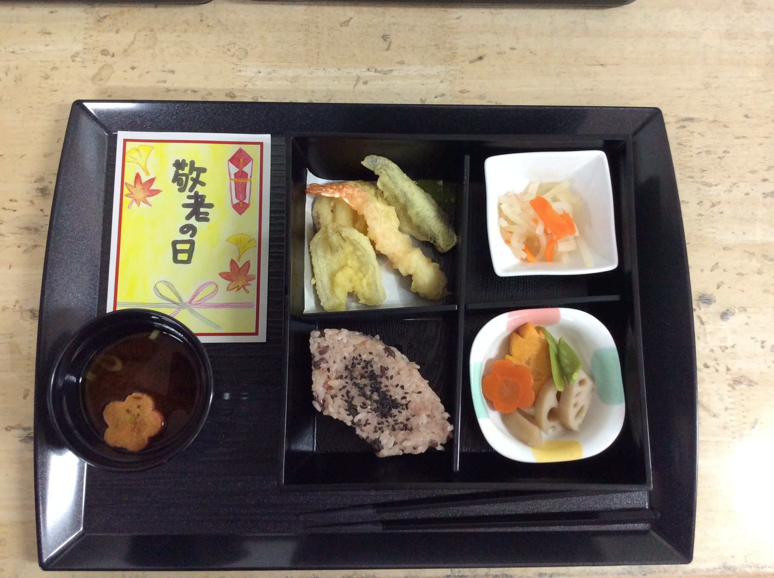 本日は、敬老の日の昼食をご紹介いたします(#^.^#)・赤飯