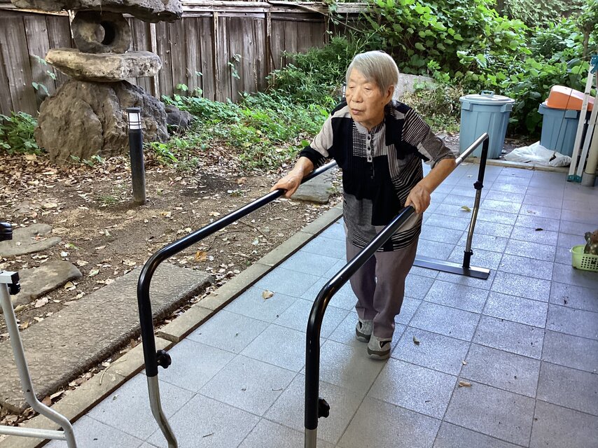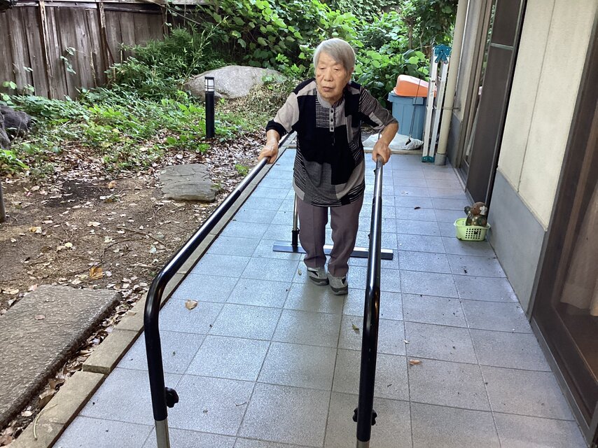 気候が良くなってまいりましたので、リフォームしたてのお庭で歩行訓練をいたしました(#^.^#)