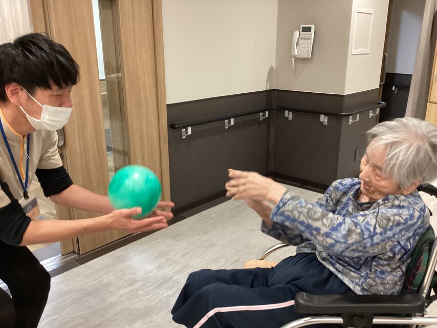 本日は、ボールを使ったレクリエーションの様子をお知らせいたします。