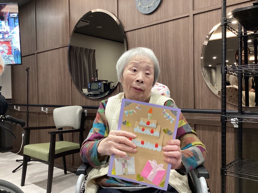 御入居の皆様も参加していただきハッピーバースデーのお歌を歌ってお祝いいたしました。