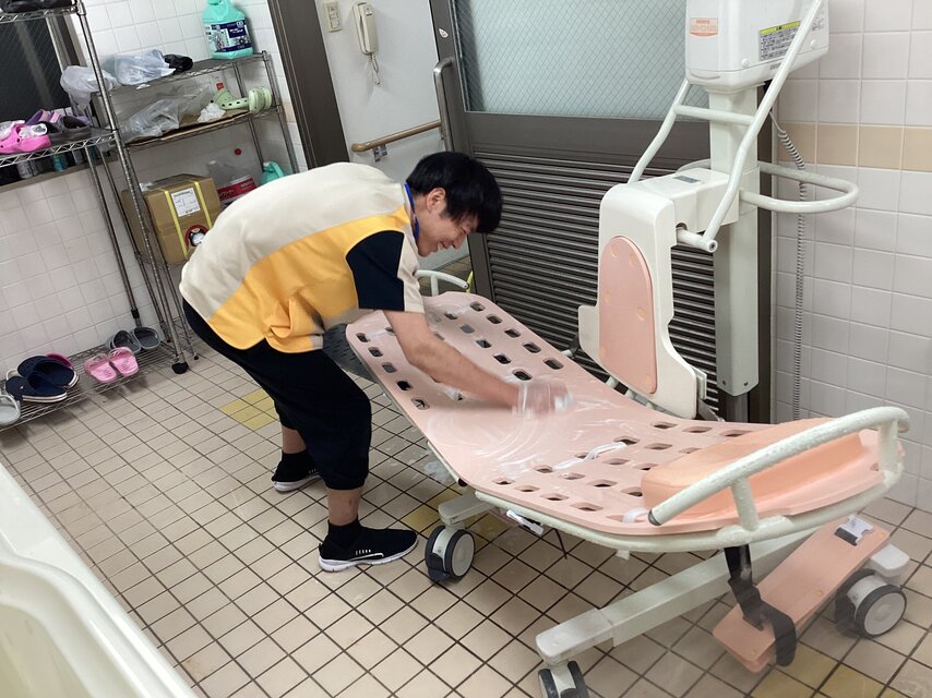 施設では日々の介護業務はもちろん、新入職員への介護技術の指導や介護現場のリーダーとして円滑に職員が業務を行えるようバックアップしています!他にもレクリエーションの企画・開催等も担当しています!