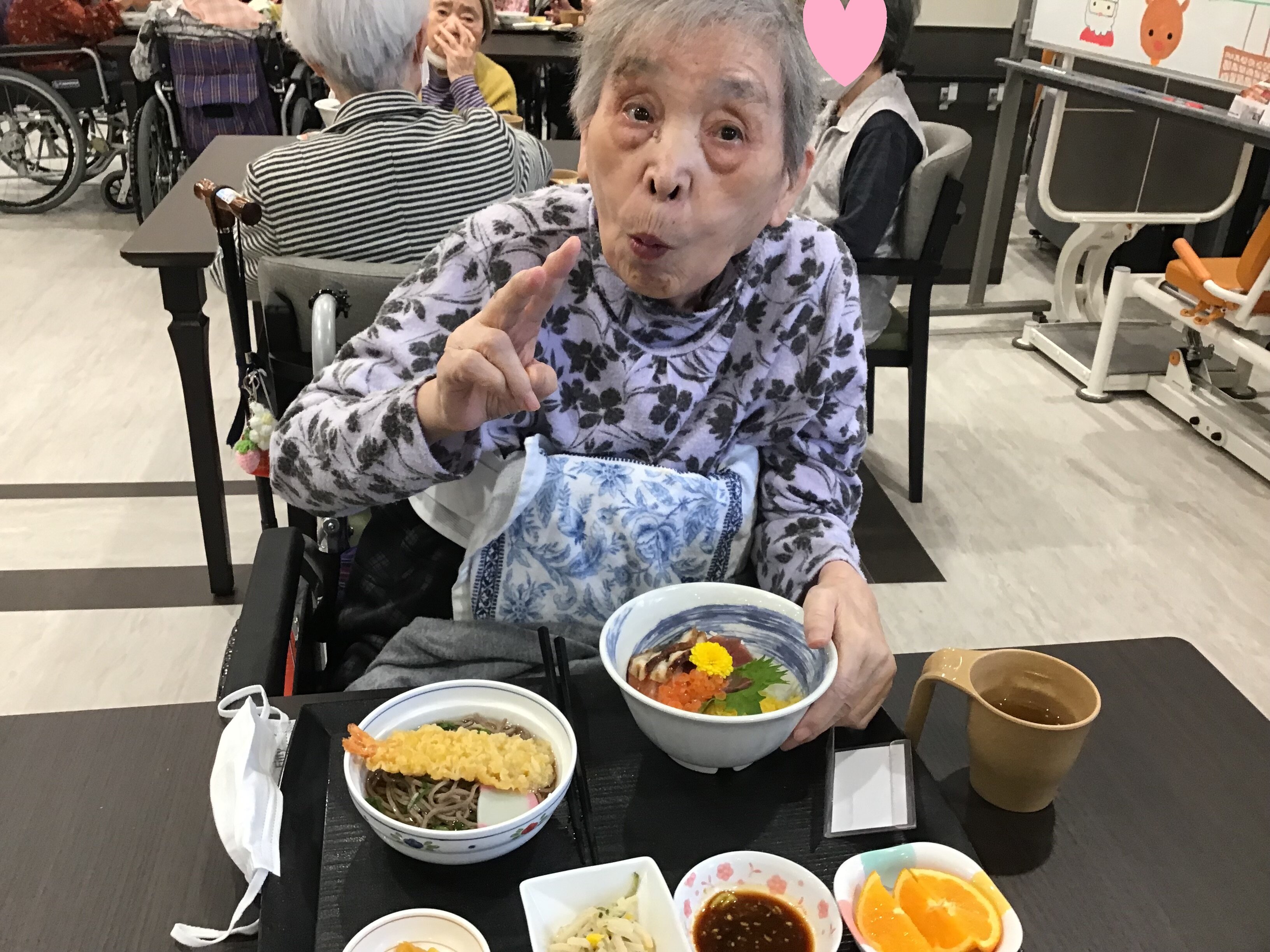 暖かい海老天そばもあり、ご入居者の皆様も皆さんとても美味しいと評判でした!!
