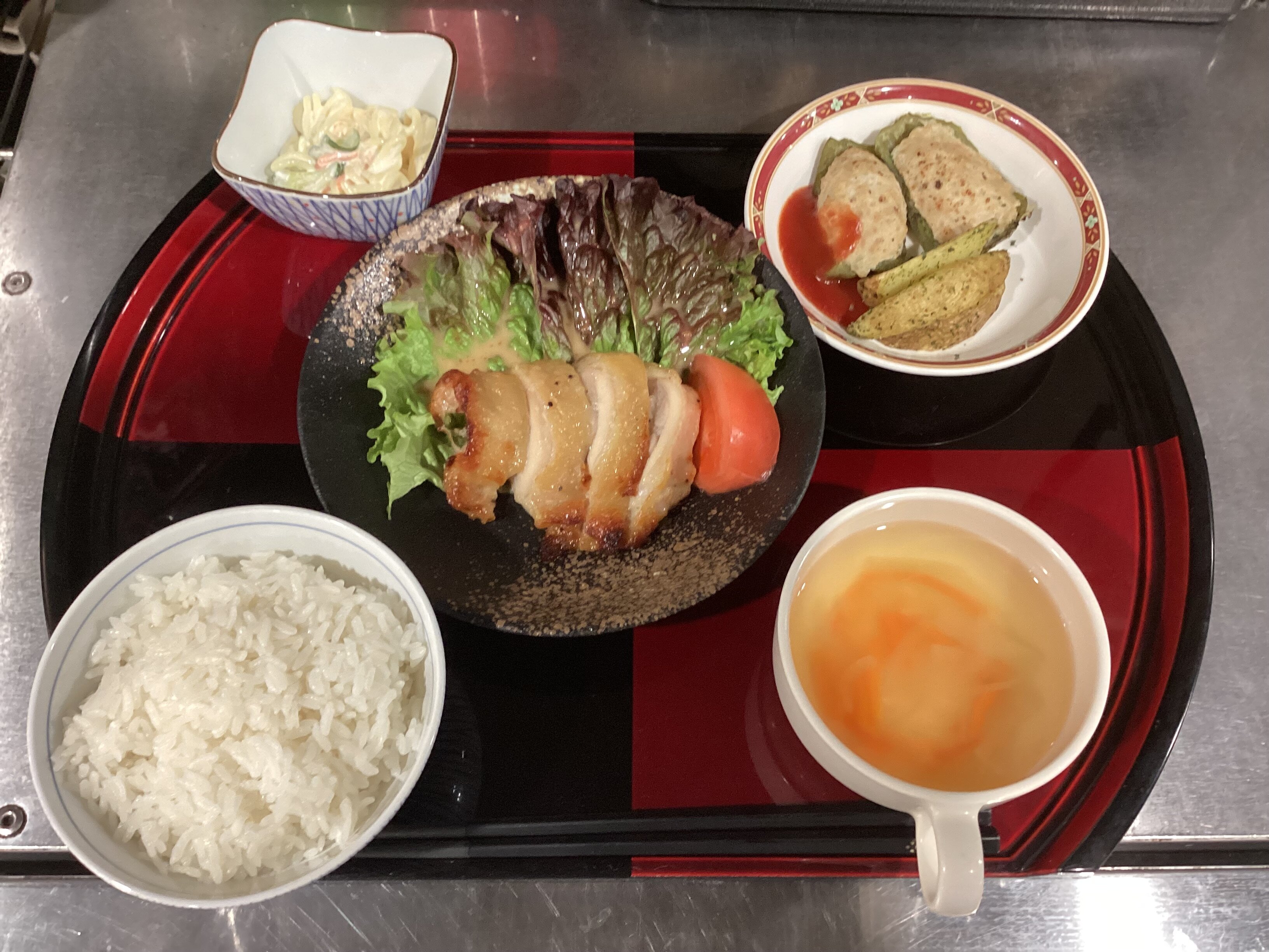 スープは、お野菜の甘みが溶け出した優しいお味。お肉料理でスタミナをつけつつ、温かい汁物でホッと一息ついていただける、バランスの取れた御膳となりました。 しっかり食べて、しっかり笑う。そんな充実した毎日を、これからもお食事を通じてお手伝いしてまいります。