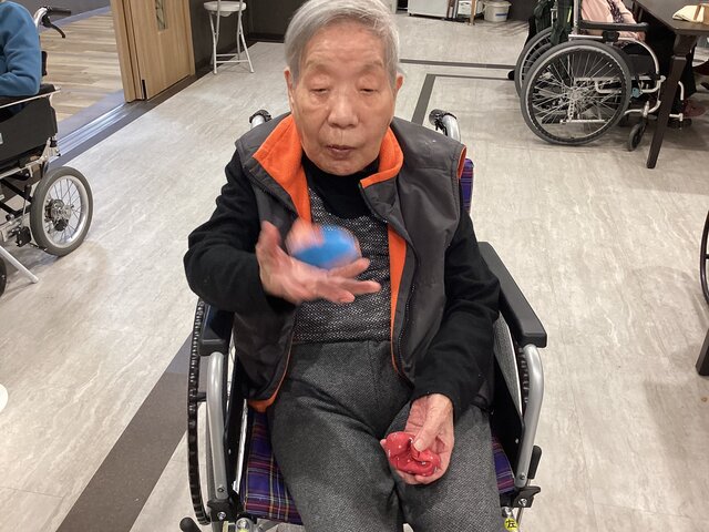 ご入居者様から「昔母親とよくお手玉してたから得意よ」と仰られお手玉を職員に披露してくださいました(^^♪