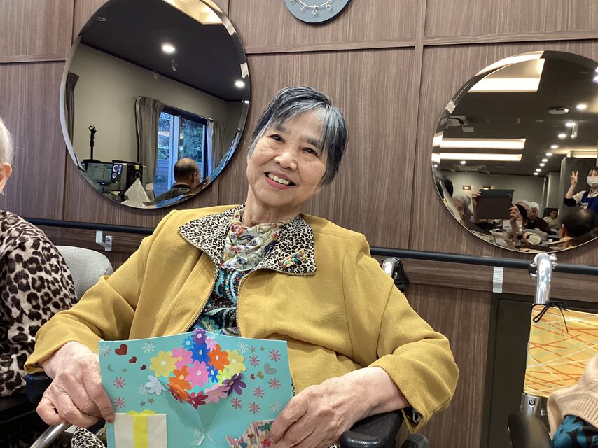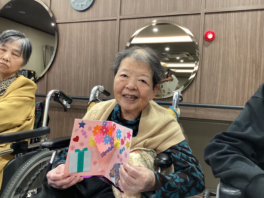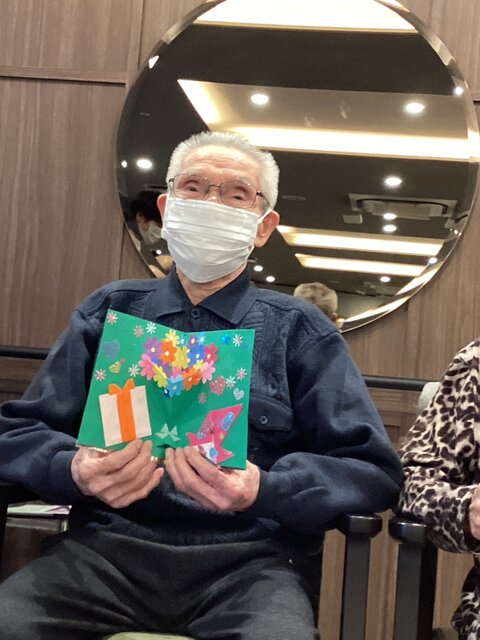今回、私たちスタッフが特に力を入れたのが、お一人おひとりにプレゼントした手作りのバースデーカードです。飛び出すお花や可愛い折り紙をあしらって思いを込めて仕上げました。