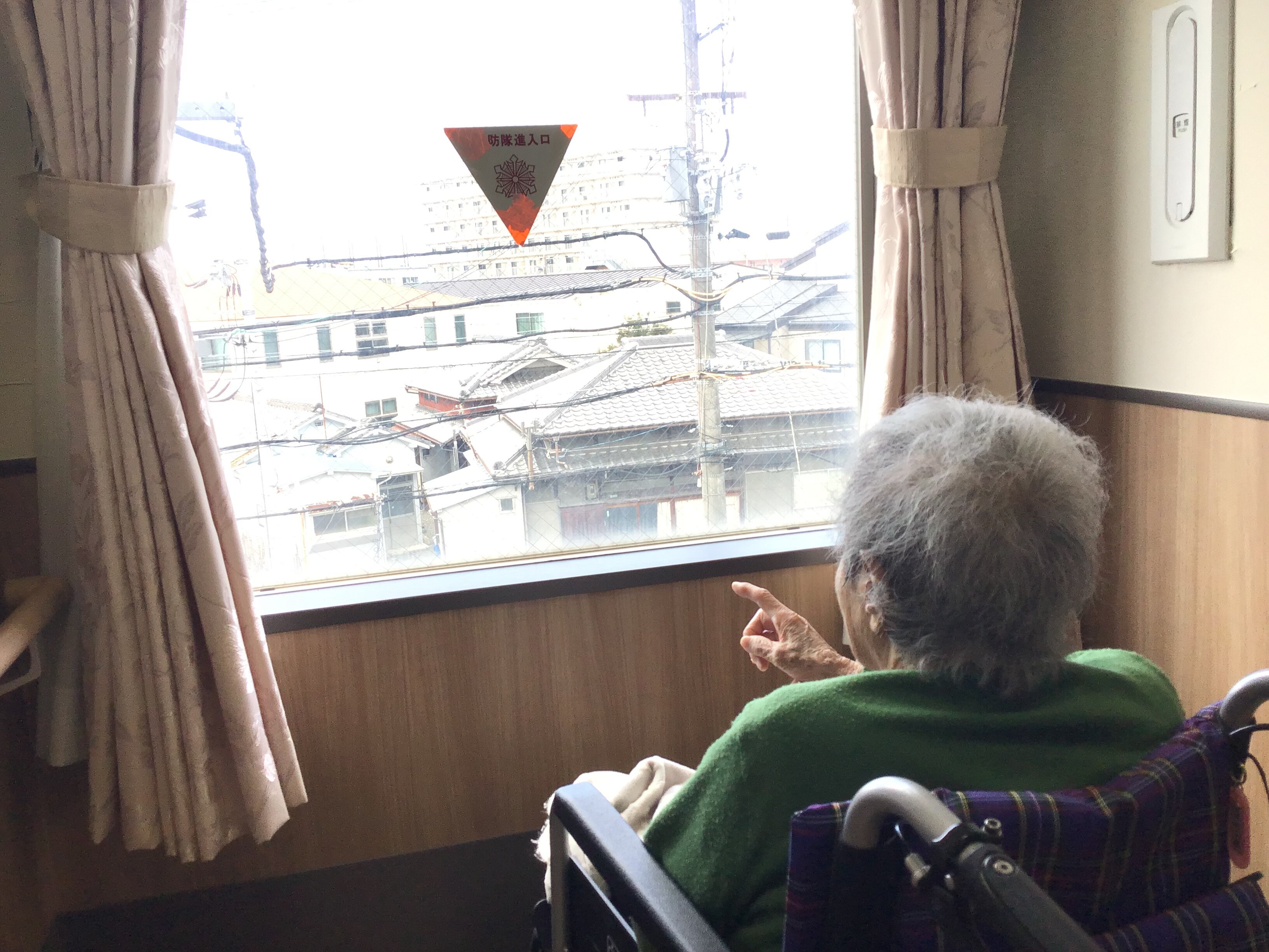 今日はリビングの大きな窓から外を眺めていた入居者様との一コマをご紹介します。 「あそこに綺麗な花が咲いているわよ」「今日は鳥がたくさん飛んでいるね」と、窓の外を指さしながら教えてくださいました(*^^*)